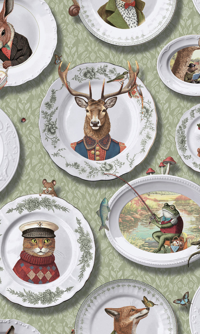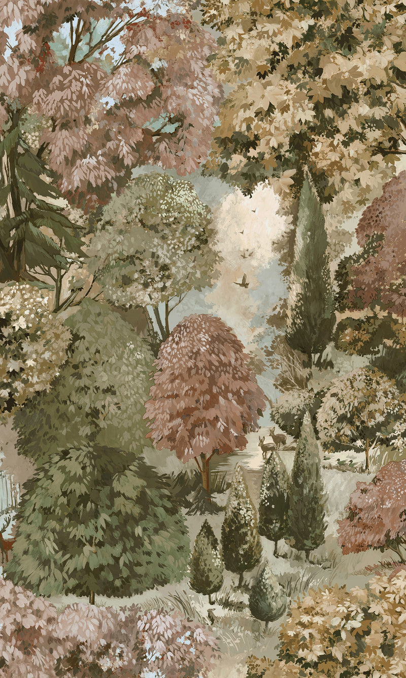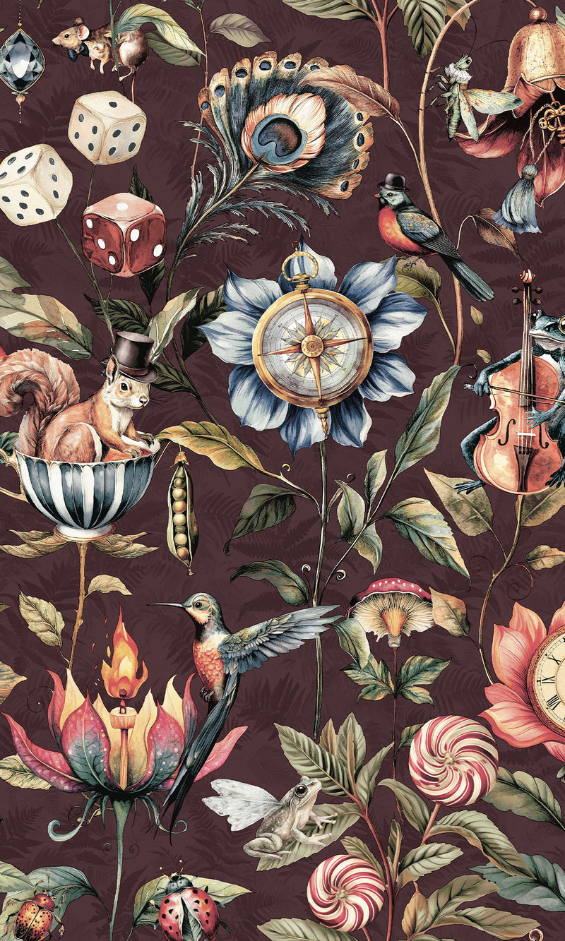 Tales of the Manor draws inspiration from the elegance of stately homes. This collection features a rich blend of botanical and whimsical designs, with a variety of patterns featuring ornate florals, toiles, romantic nature scenes, and playful animals amidst antique objects. Jewel tones and intricate details bring the grandeur of the manor houses to life, whilst charming elements add a fanciful twist to each piece. Perfect for creating dramatic yet inviting interiors, this collection celebrates the beauty and fantasy of classic estates.