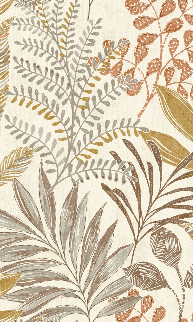 Taupe Light Leaf Motif Tropical Wallpaper R7960