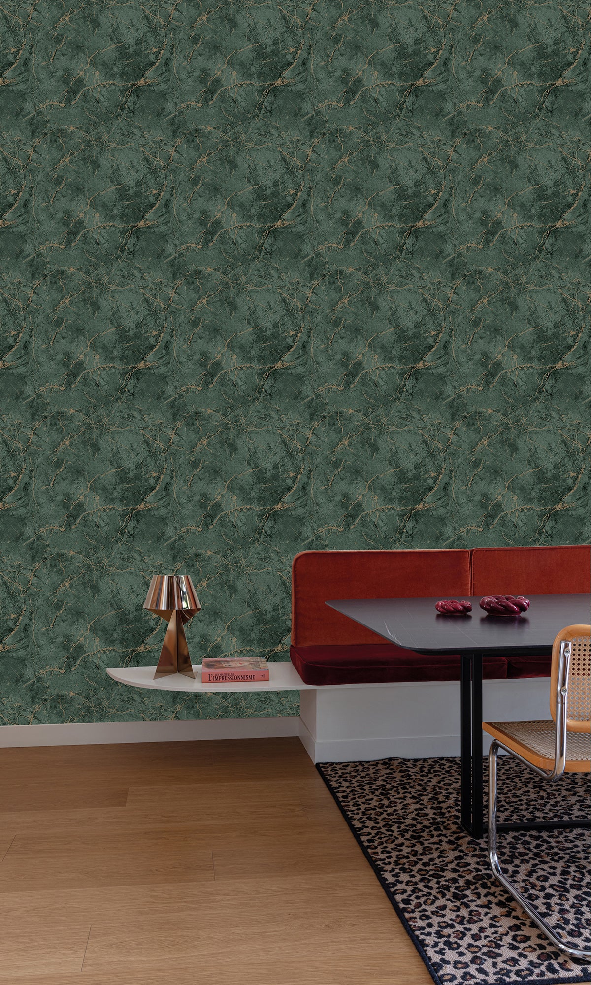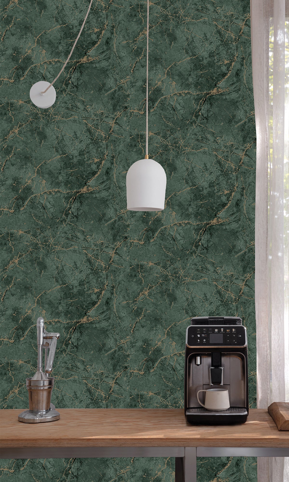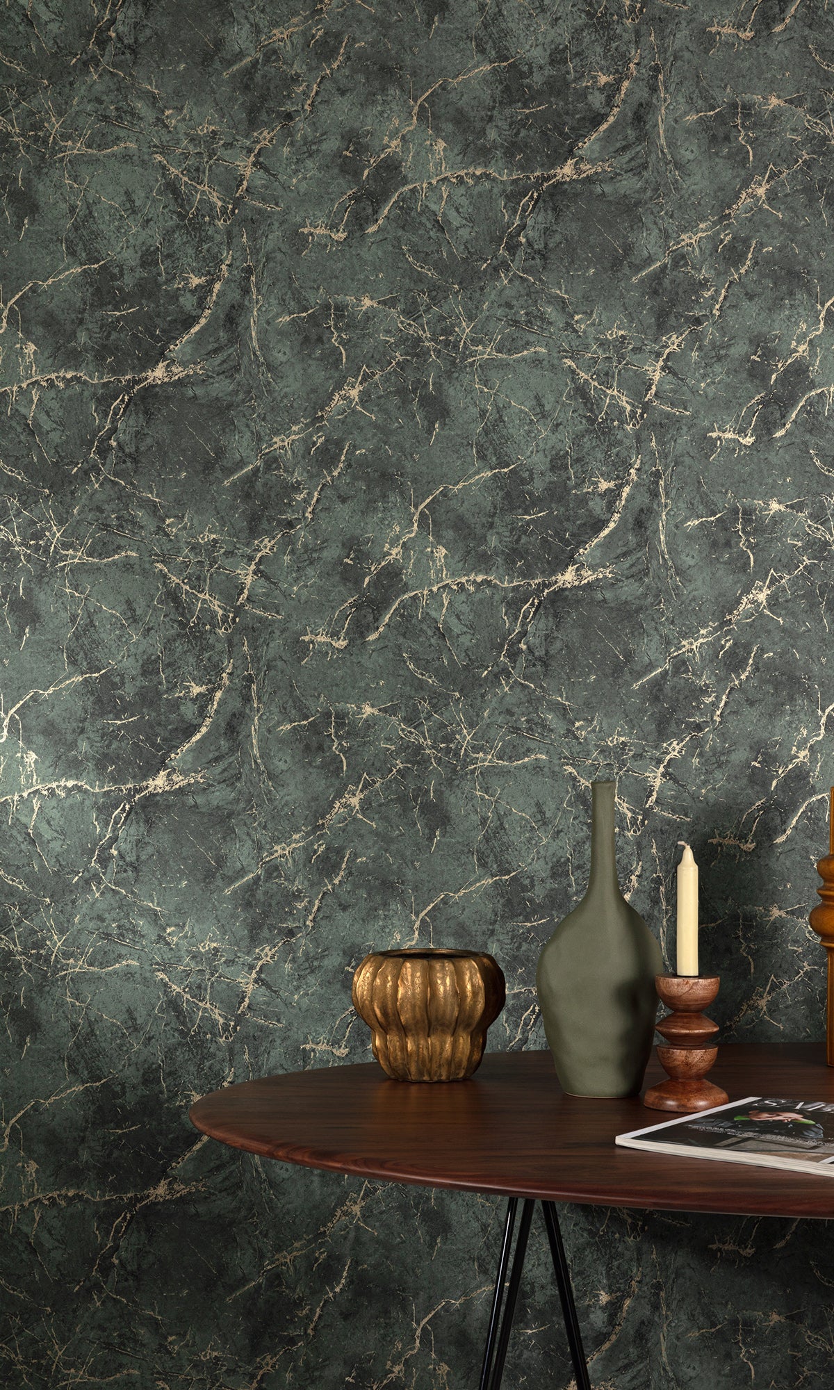 Dark Hunter Green Cracked Marble Wallpaper R9812