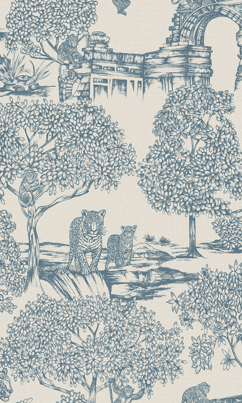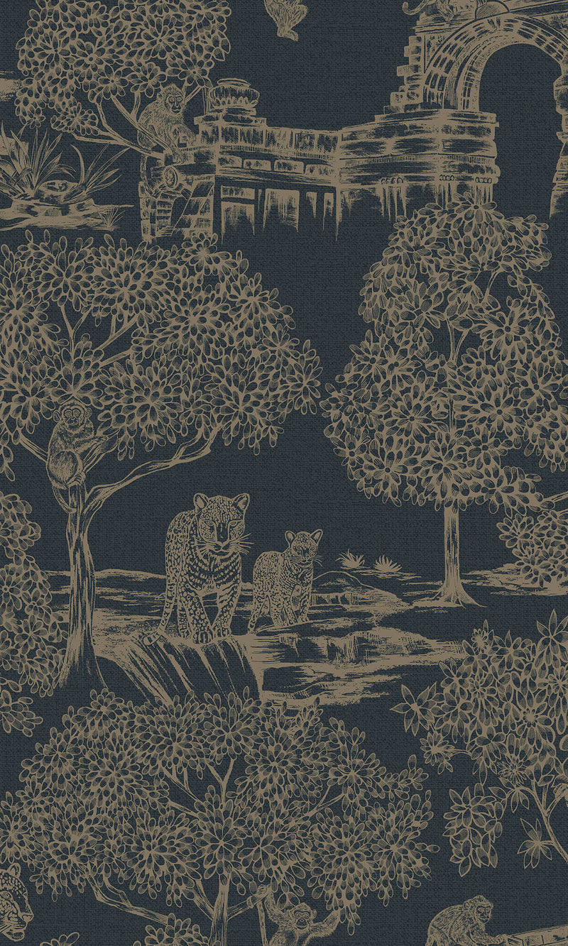 Navy Enchanting Wildlife Landscape Wallpaper R9600