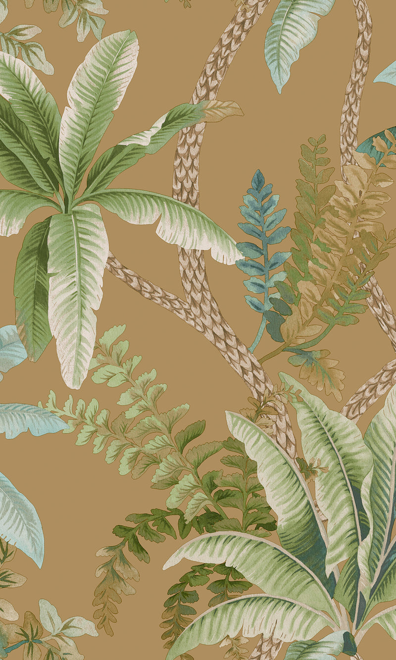 Green/Cream Serene Tropical Oasis Wallpaper R9606