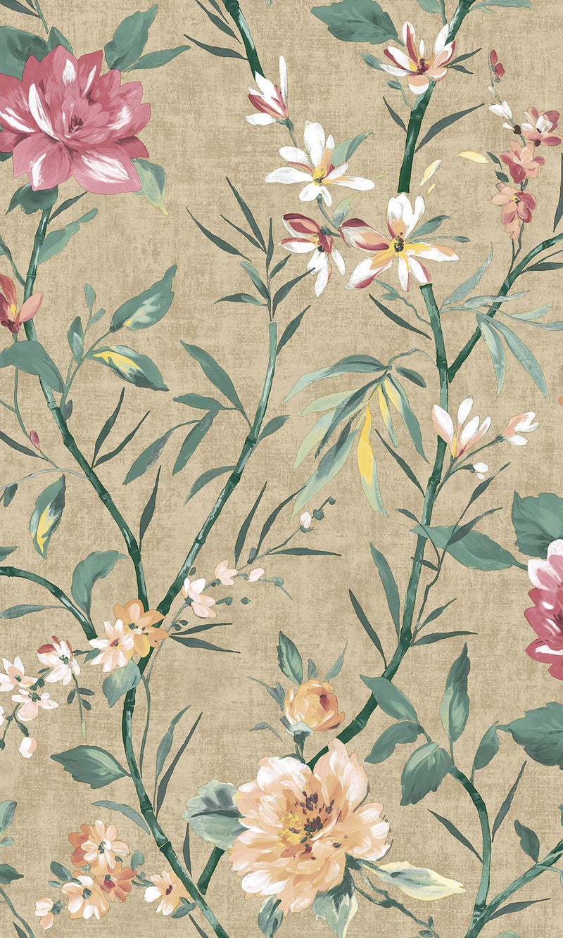 Beige Pink Meandering Magnolias Printed Wallpaper R9535