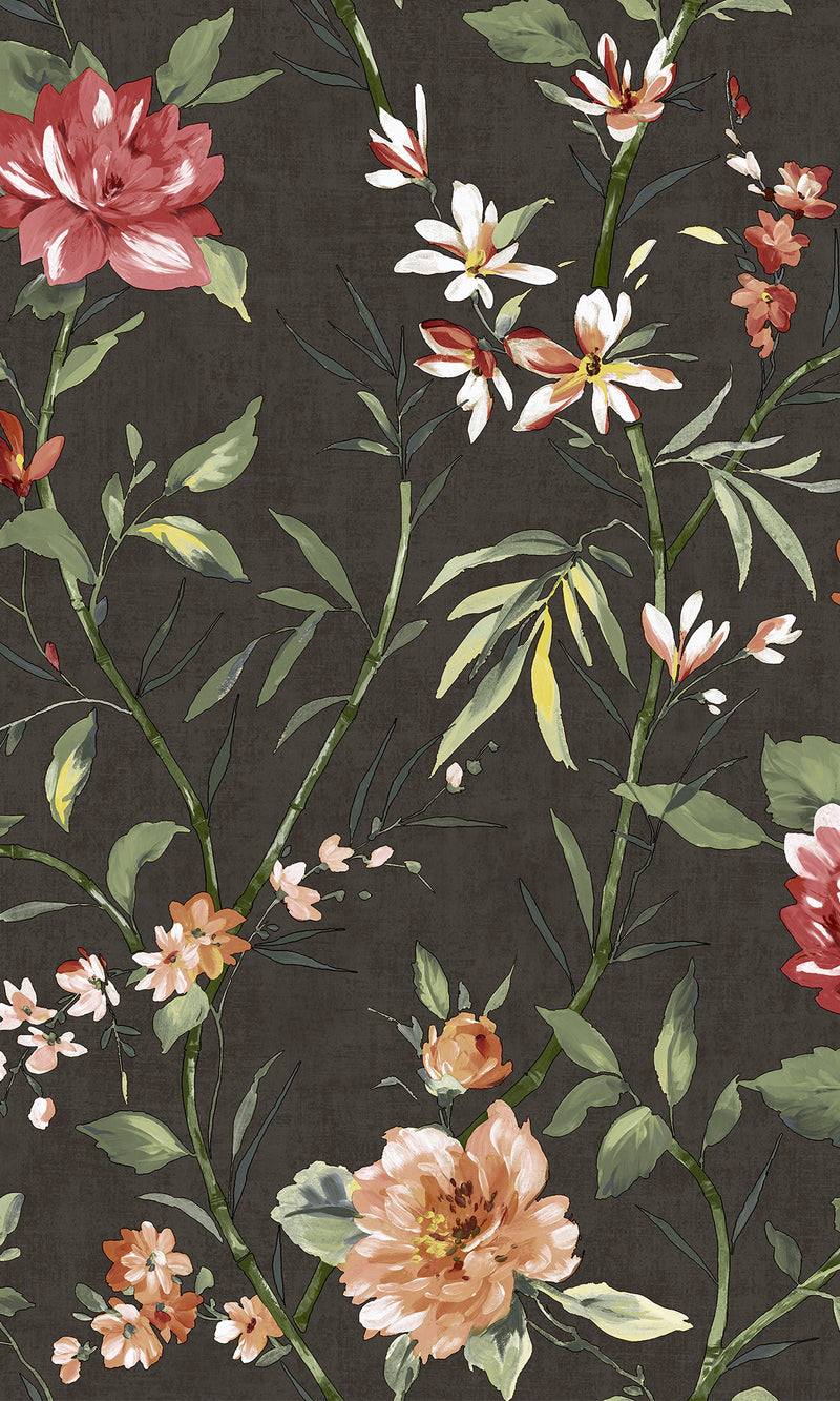 Charcoal Trailing Camelia Flowers Wallpaper R9616