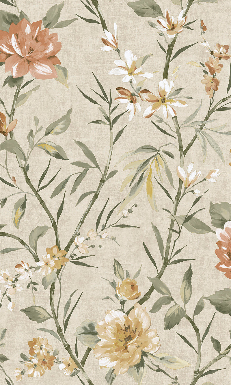Neutral/Orange Trailing Camelia Flowers Wallpaper R9617
