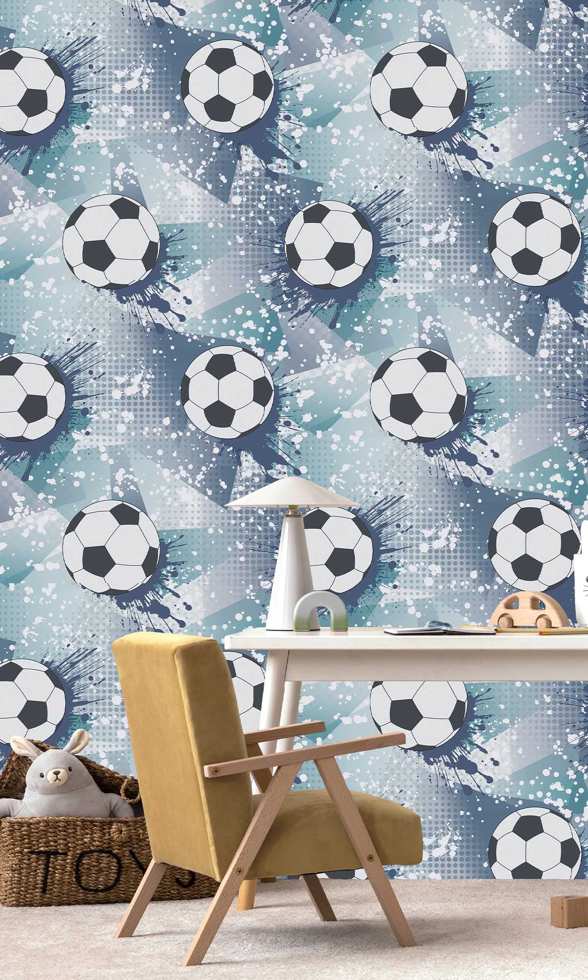 If you want your kid’s room to actually feel like a stadium on game day, this Football Splash Wallpaper is totally the way to go. It’s loud, it’s got footballs basically exploding across these wild, geometric shapes—pretty much screams “I live and breathe football!” Forget boring walls. Slap this up in a bedroom or playroom and suddenly you’ve got instant energy, like, you can practically hear the crowd cheering.