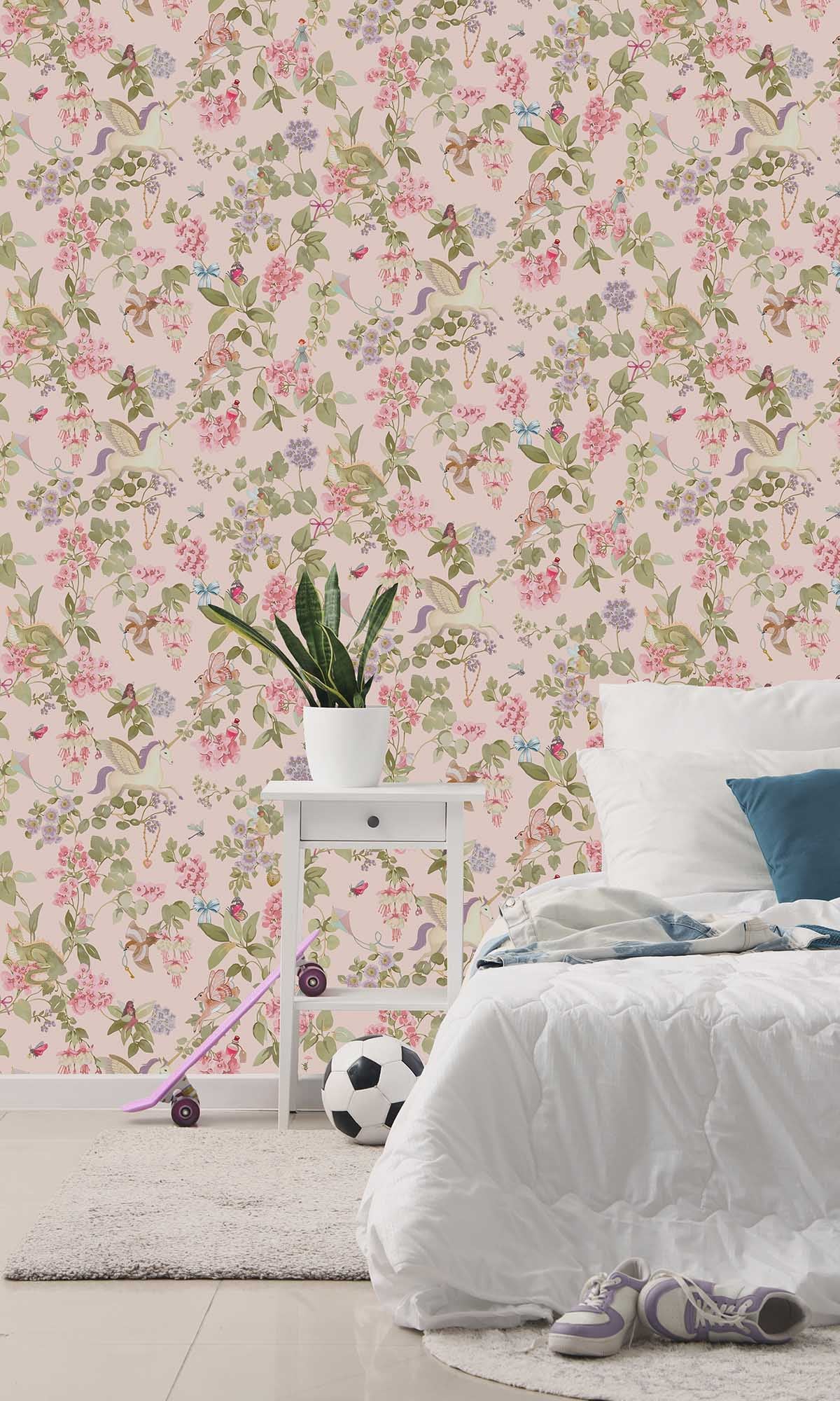 Alright, picture this: you walk into a room and—bam!—it’s like you’ve just tumbled headfirst into a storybook. The walls? A riot of soft flowers, but look closer and you’ll spot cheeky little fairies peeking out, a unicorn strutting its stuff, maybe even a dragon catching some Z’s. This wallpaper isn’t just decor; it’s basically an open invitation to daydream.