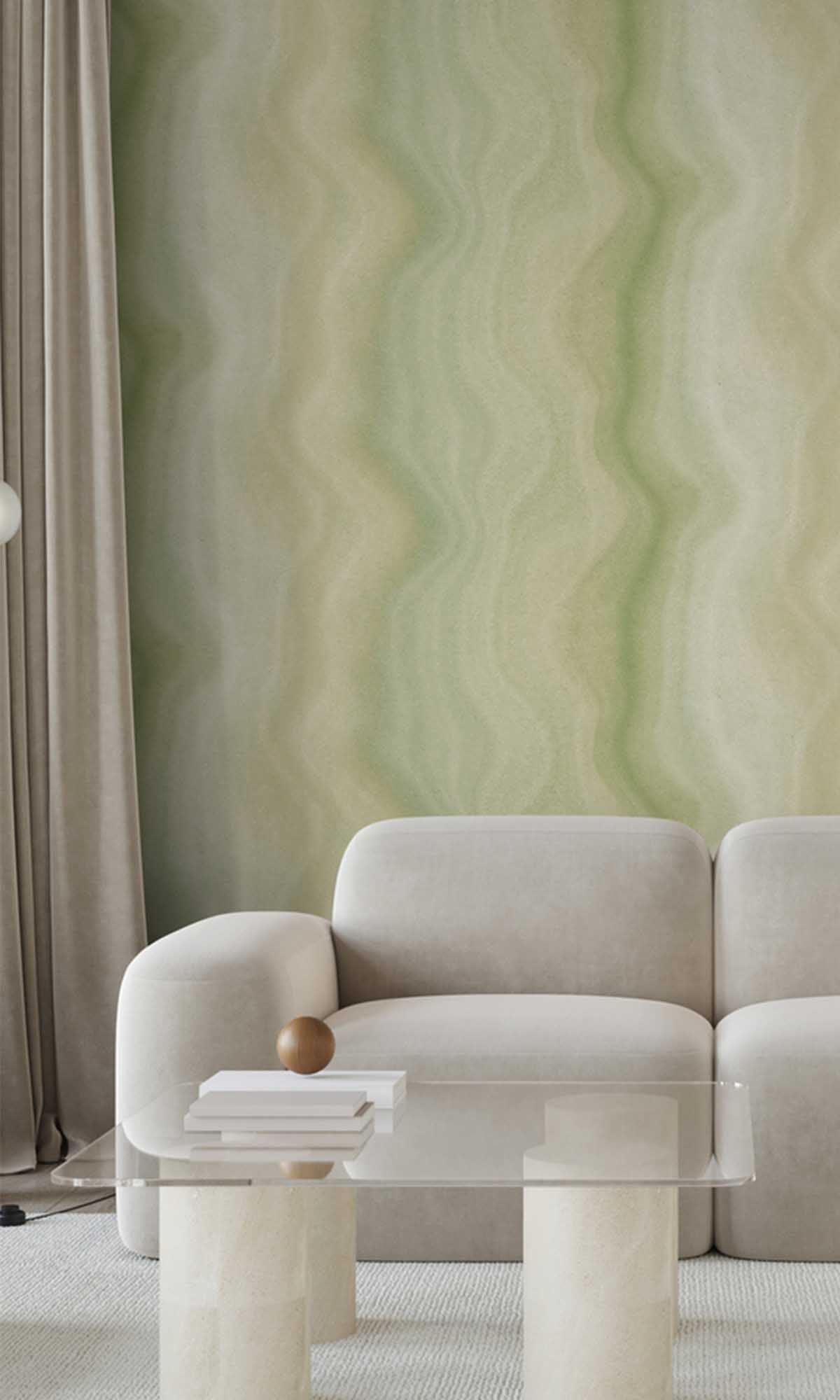 We print it on textured vinyl, so it really nails that look of movement—think gentle water or fabric in a breeze. The panels come extra wide, so you get a smooth, continuous flow with barely any seams. It’s perfect for those big open-plan rooms or if you want a dramatic feature wall that looks polished and expensive.