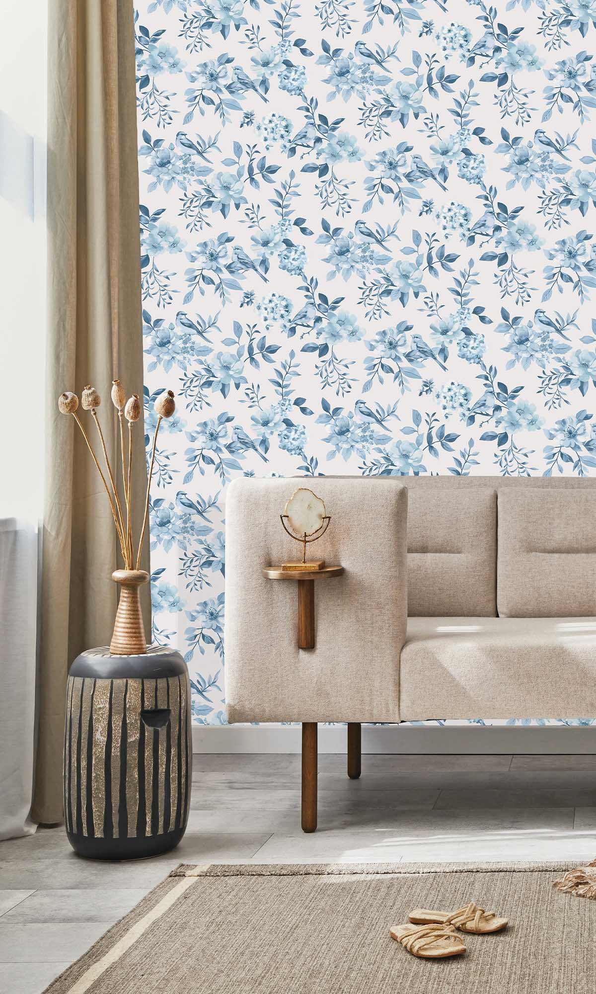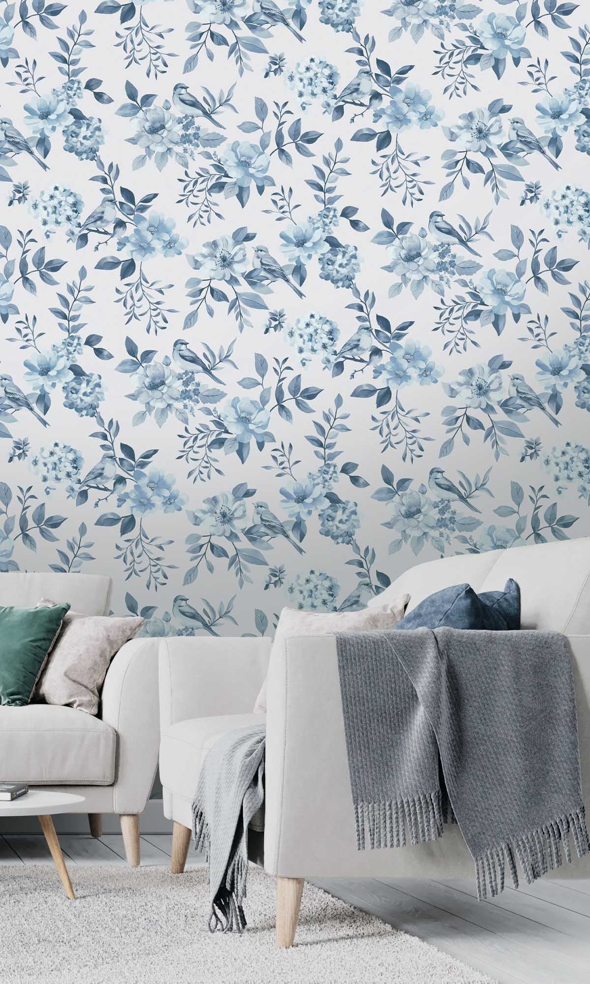 This Birds in a Garden wallpaper isn’t just decor—it’s like letting your walls throw a secret garden party. Imagine tiny birds gossiping in the petals, flowers bursting out in color like they just couldn’t help themselves, and all of it painted with that dreamy, artsy touch. The whole scene feels alive, like you might catch a petal falling or a bird stretching its wings if you blinked at the right moment.