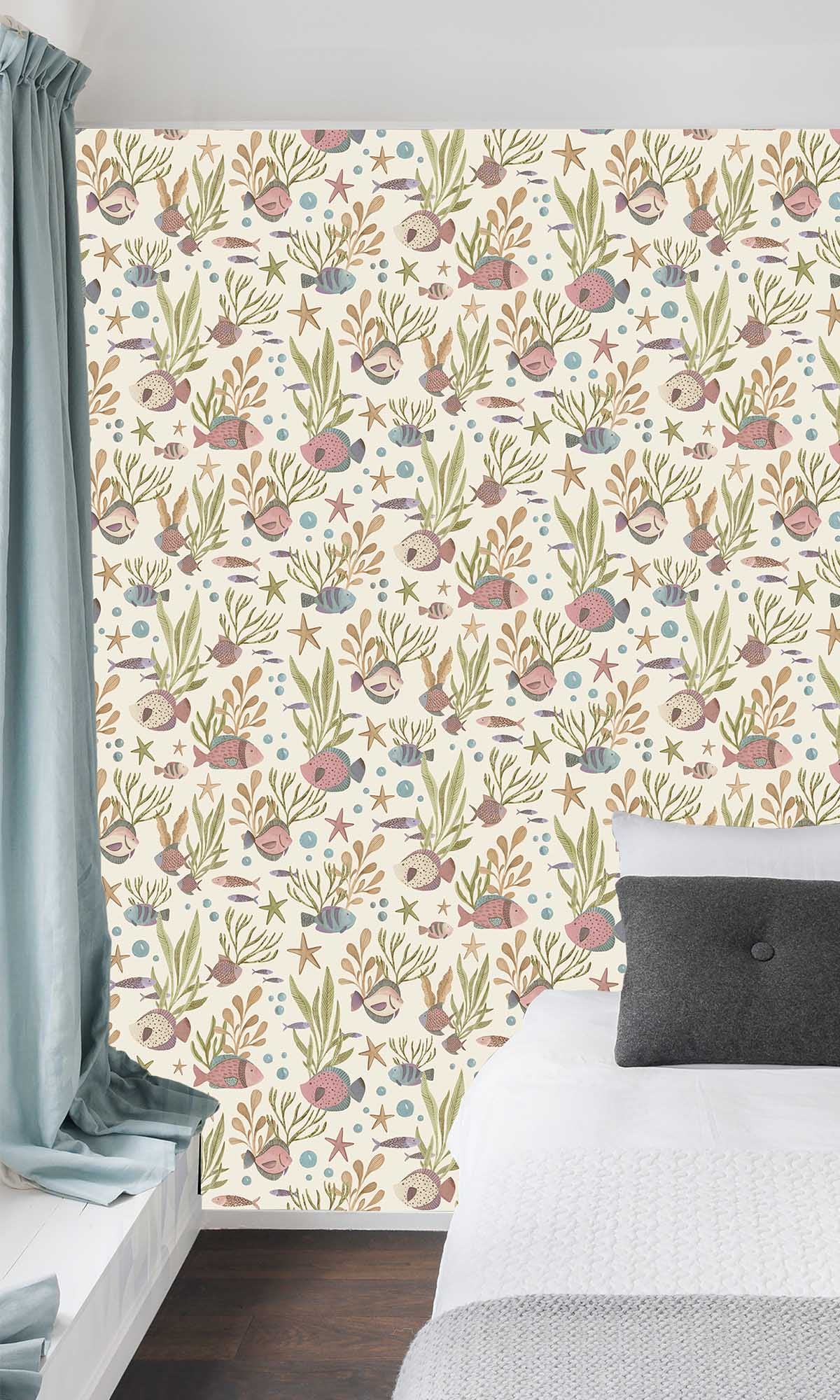 Turn your child’s room into a gentle underwater world with our Underwater Scene Wallpaper. It’s a playful, easygoing design that works just right in nurseries, bedrooms, or any spot where kids like to play and dream. The wallpaper is covered in hand-drawn fish, starfish, and lively sea plants—think cheerful faces and soft shapes that make you smile. It brings all the color and wonder of the ocean floor, but in a way that feels safe and inviting for kids.