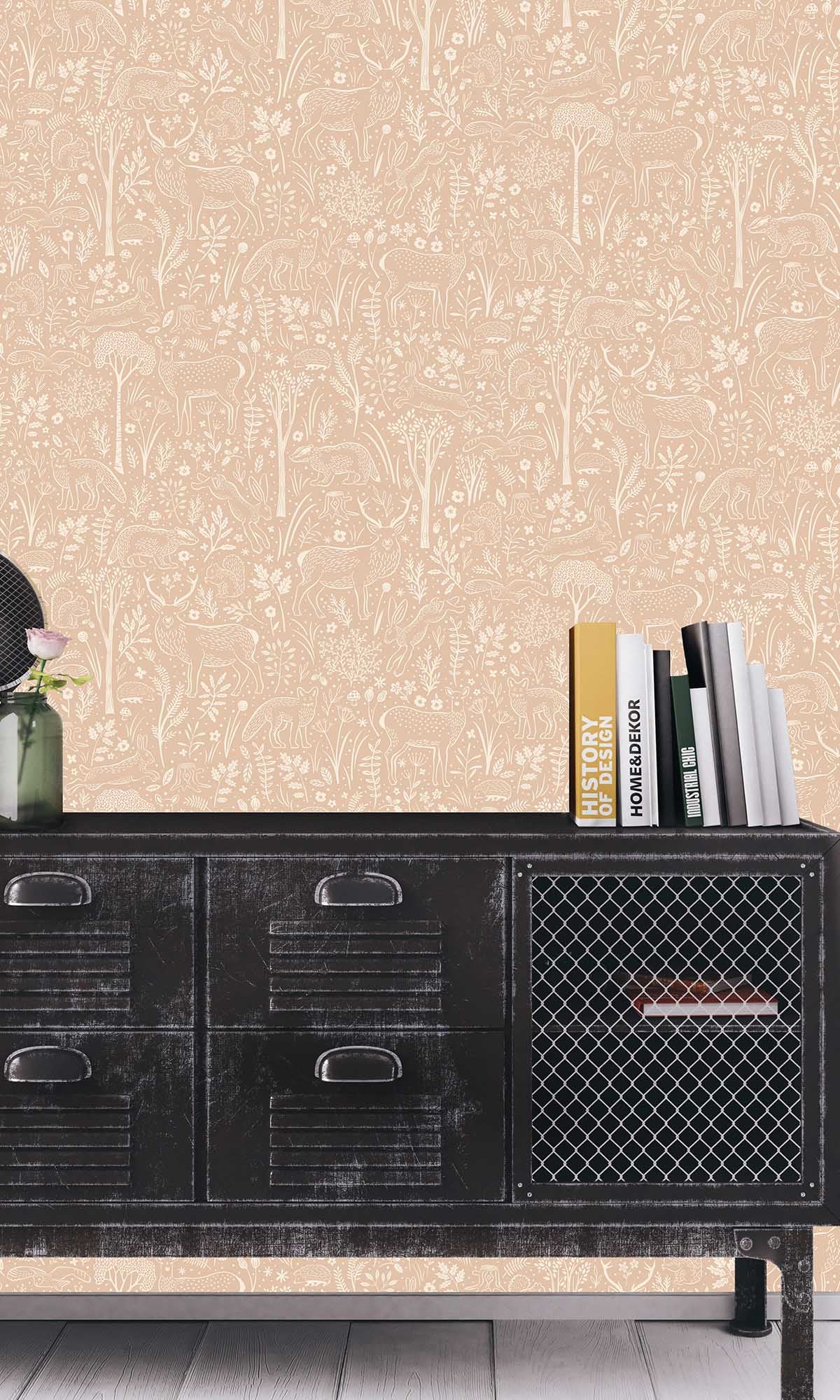 If you want a nursery or a cozy little nook that looks like it belongs in some dreamy fairytale, this Forest Scene Wallpaper is kind of a no-brainer. It’s got that soft taupe or beige vibe going on—not screaming for attention, just quietly setting the scene. Super chill, honestly. The pattern? Yeah, it’s detailed, but not in that overwhelming way. You’ve got all these cute woodland creatures—foxes, deer, squirrels, hedgehogs, rabbits (the gang’s all here)—all hanging out under trees, hiding in the grass, doing their adorable thing. And the color? Off-white, so the animals and plants pop just enough without making your eyes hurt.
