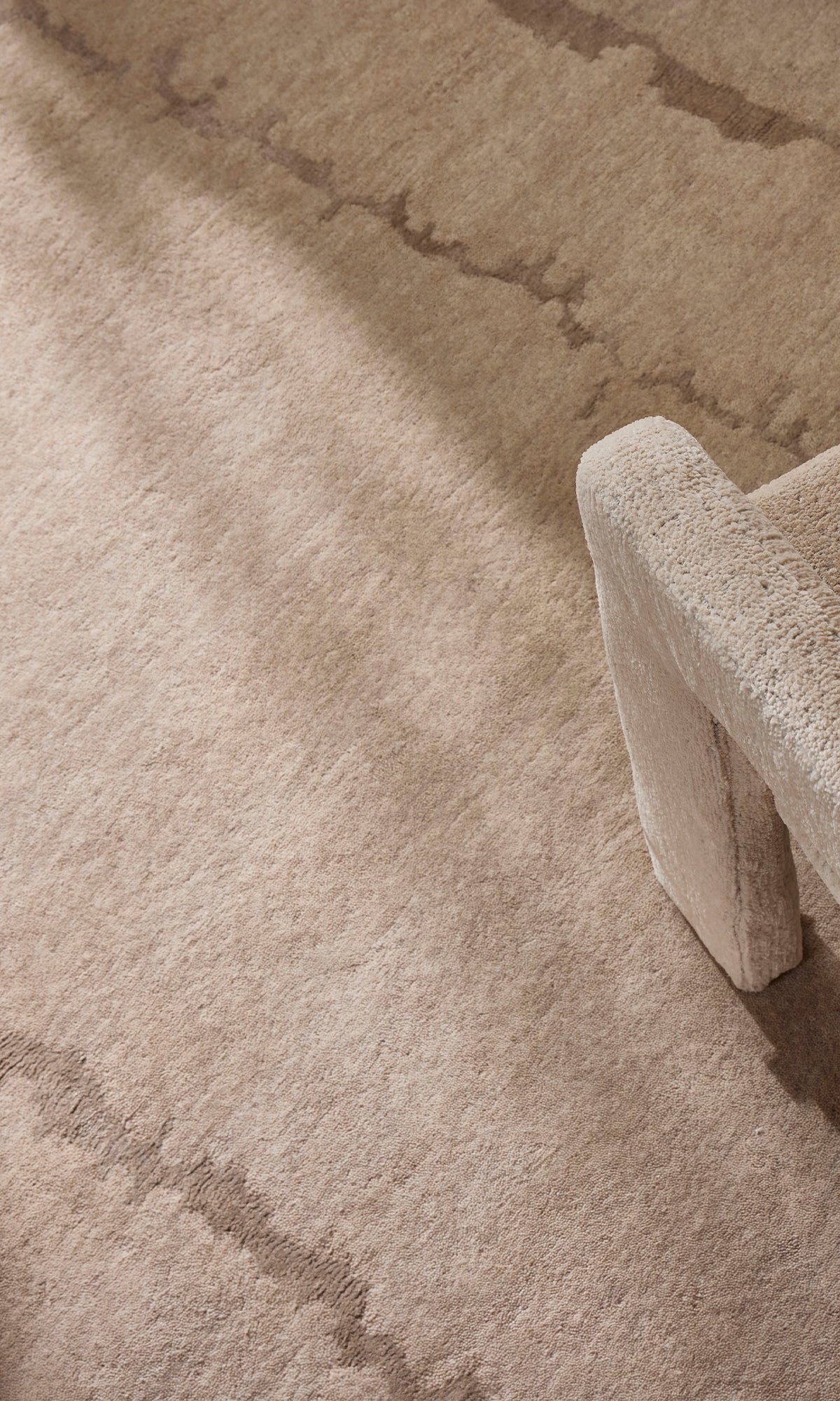 Beige Abstract Concrete Effect Hand Knotted Rectangular Luxury Rugs