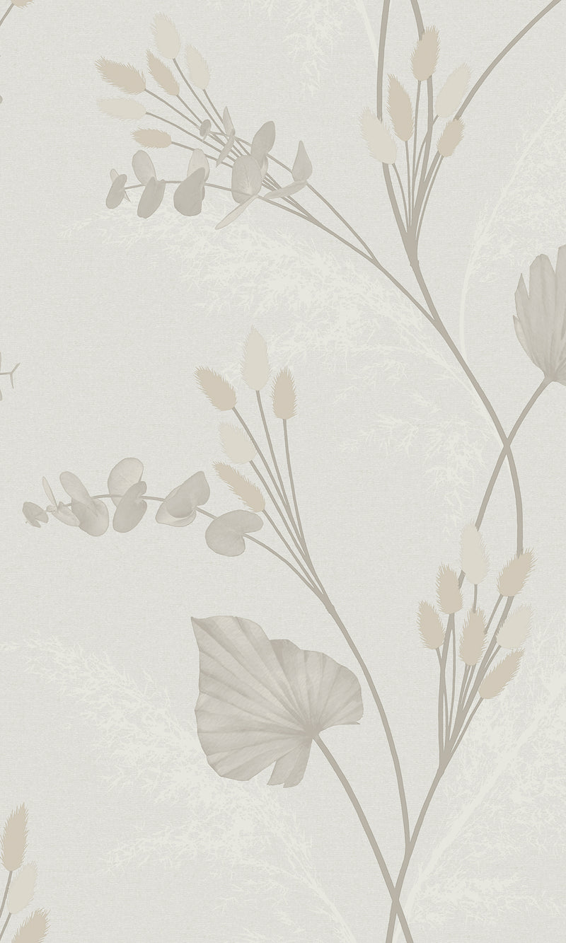 Grey Bunny Tails and Pampas Grass Printed Wallpaper R9519