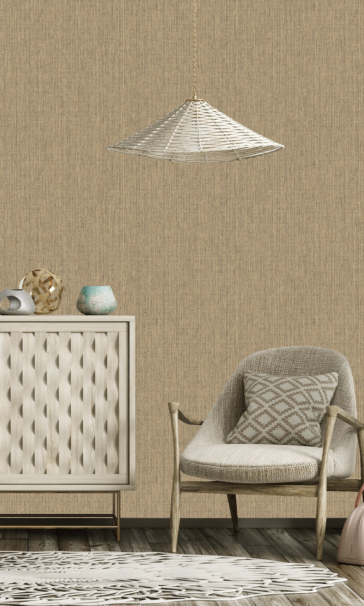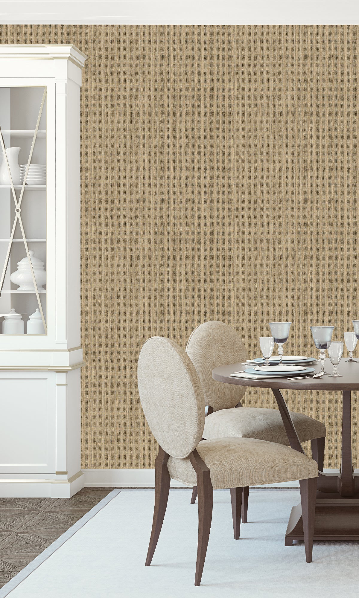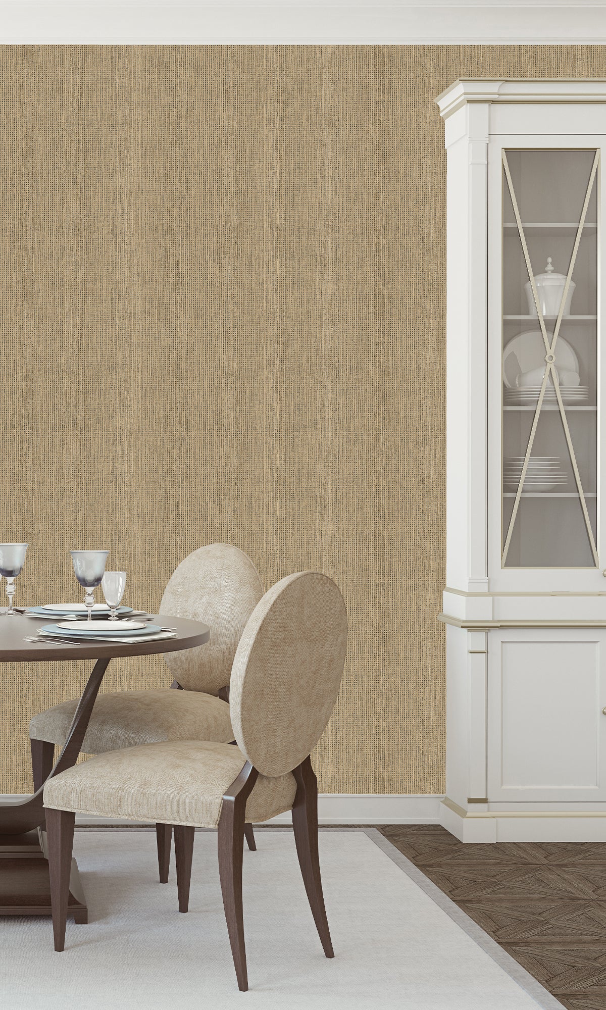 The intricate weave-like pattern of our Woven Luxe Textured Wallpaper adds warmth and depth that captures the essence of natural fibers with a finely textured surface. The subtle metallic shimmer infuses a touch of luxury and enhances the ambiance of any space.
