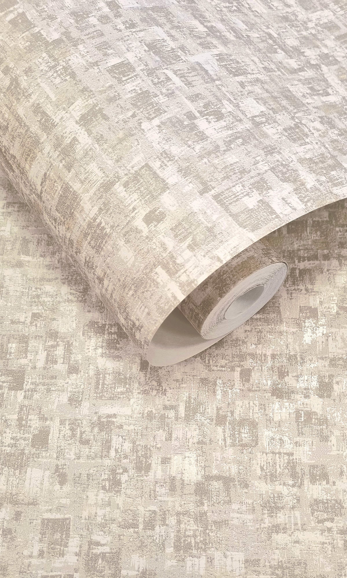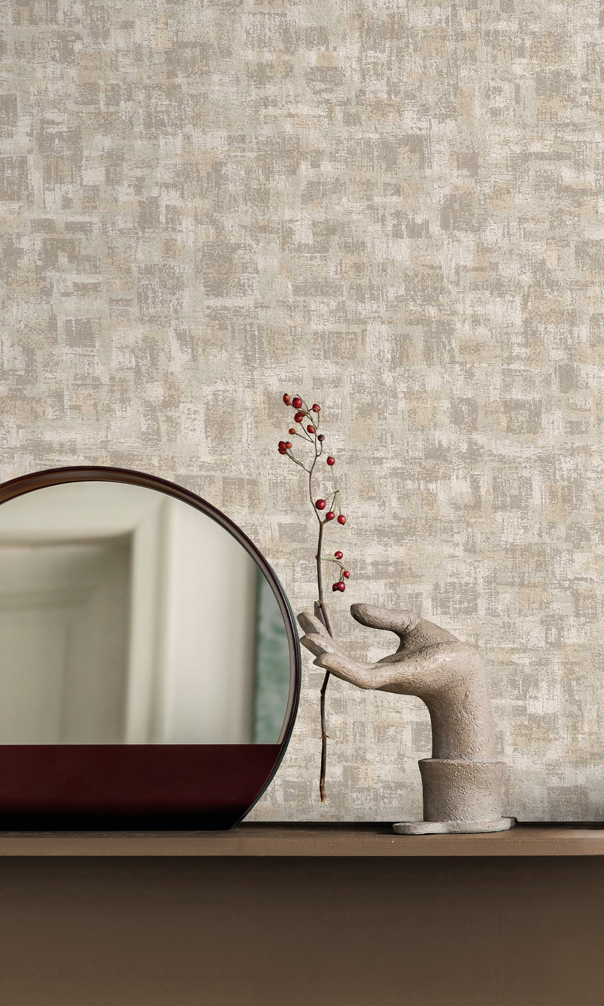 Featuring stacked and overlapping brushed blocks, this Brushed Block Textured Wallpaper design creates a fluid composition with a three-dimensional effect. The brushed texture softens the structured layout, while metallic accents add a touch of shimmer, enhancing depth and movement.