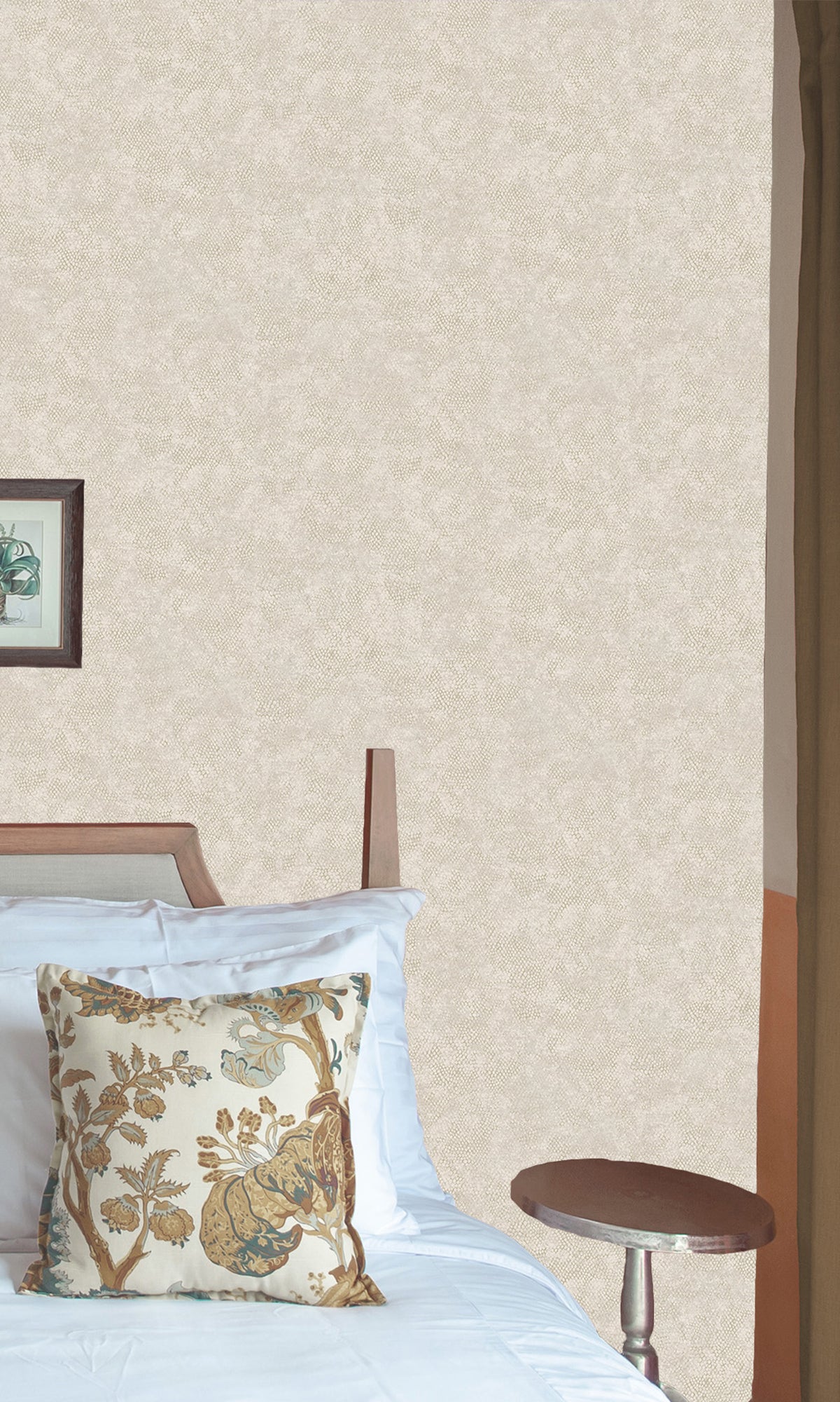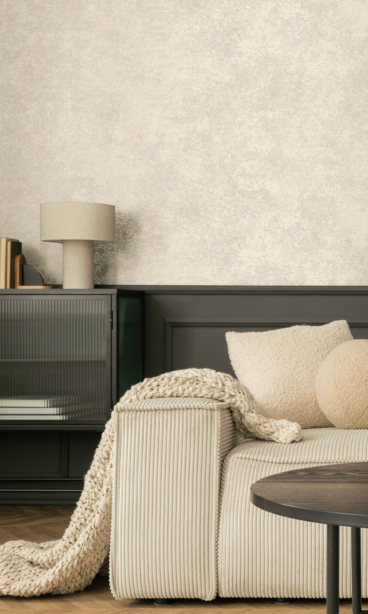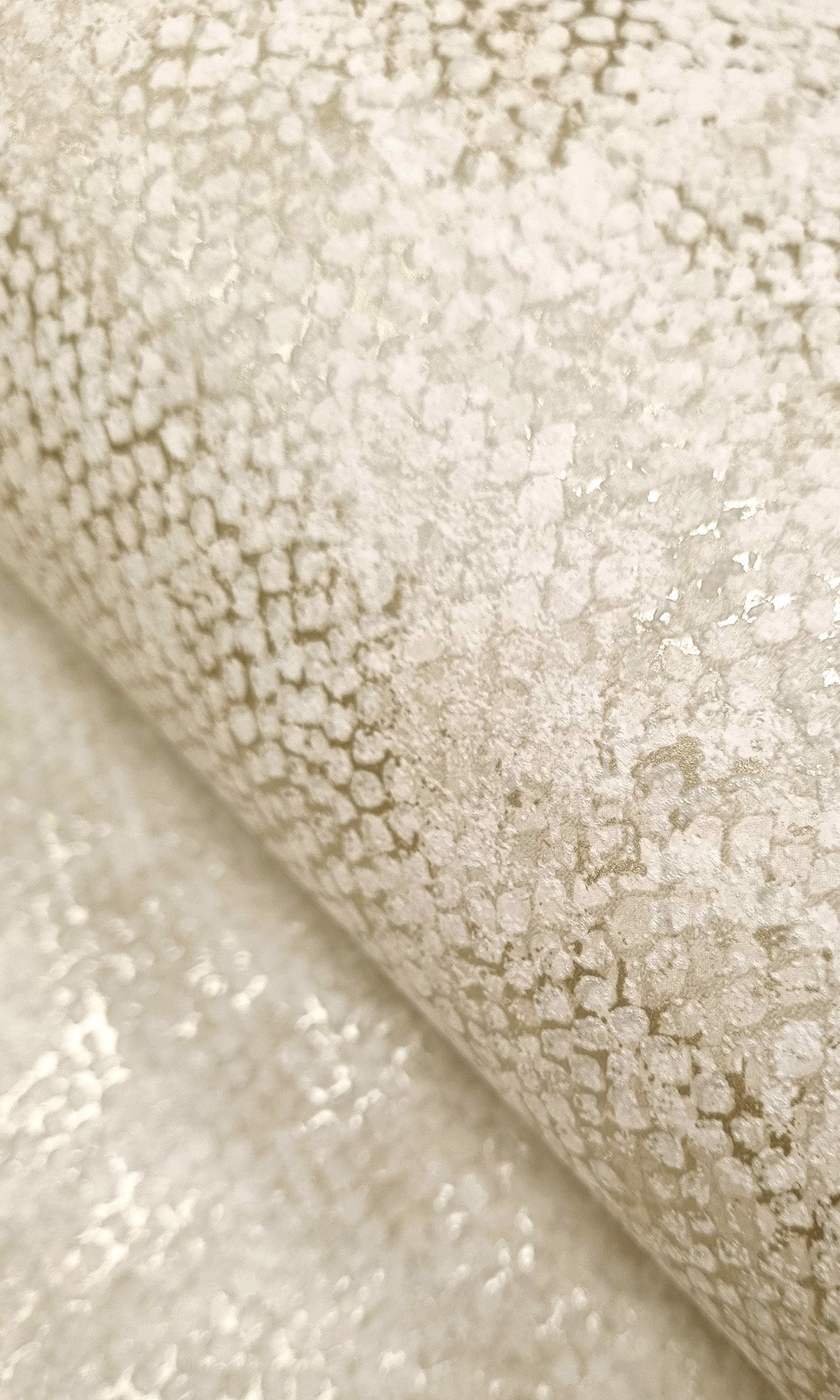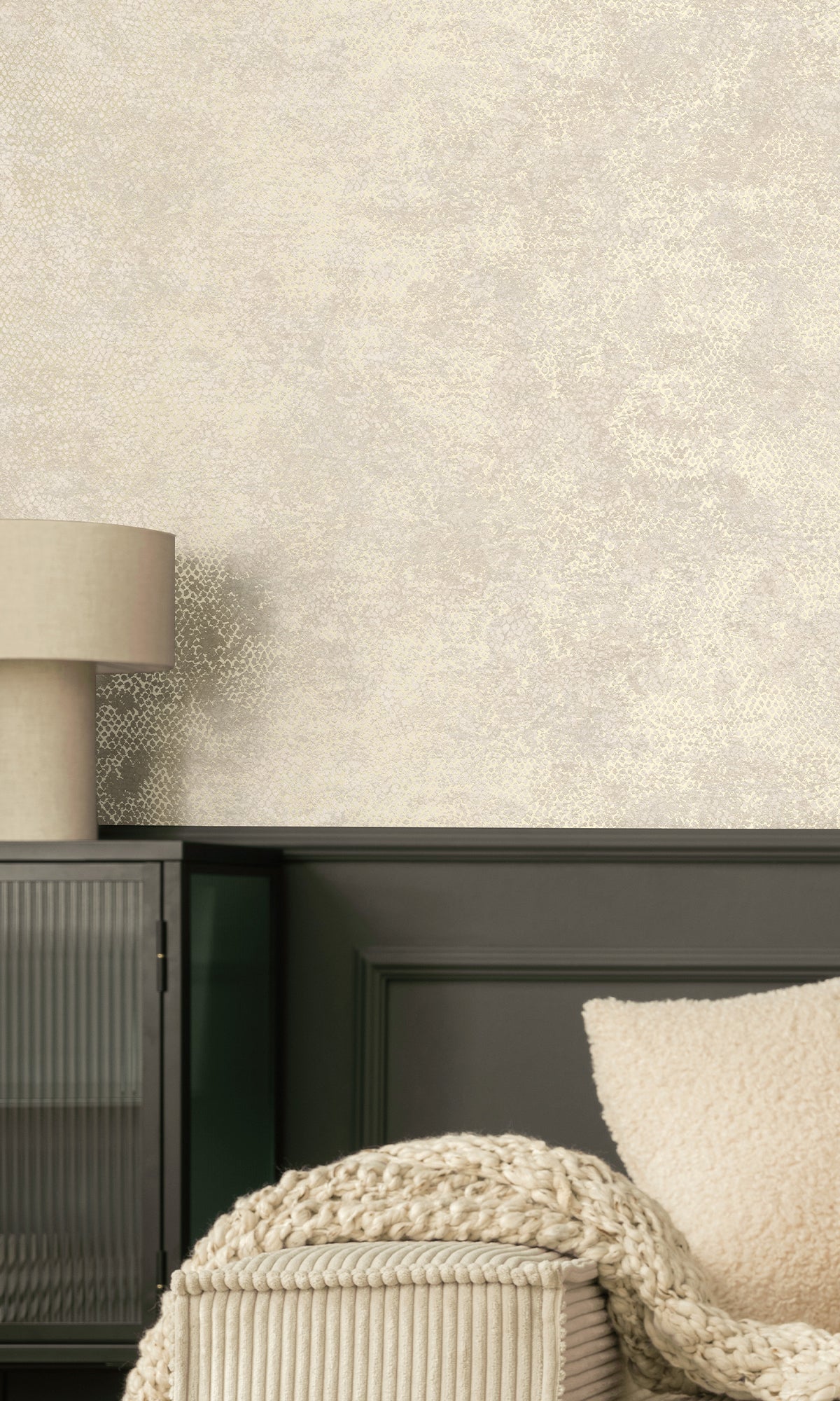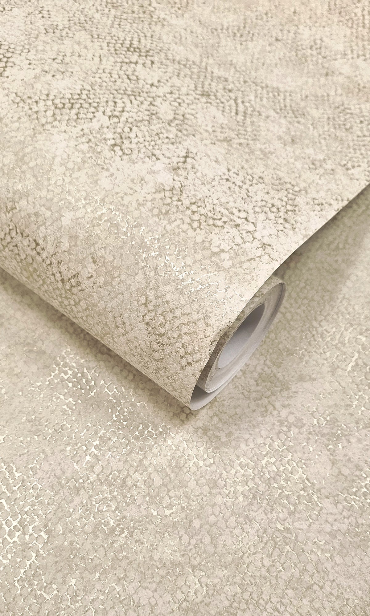 This luxurious wallpaper features a mesmerizing scale-like metallic pattern that adds depth and sophistication to any space. The raised surface of our Faux Snakeskin Textured wallpaper enhances the tactile experience, creating a striking interplay of texture and light.
