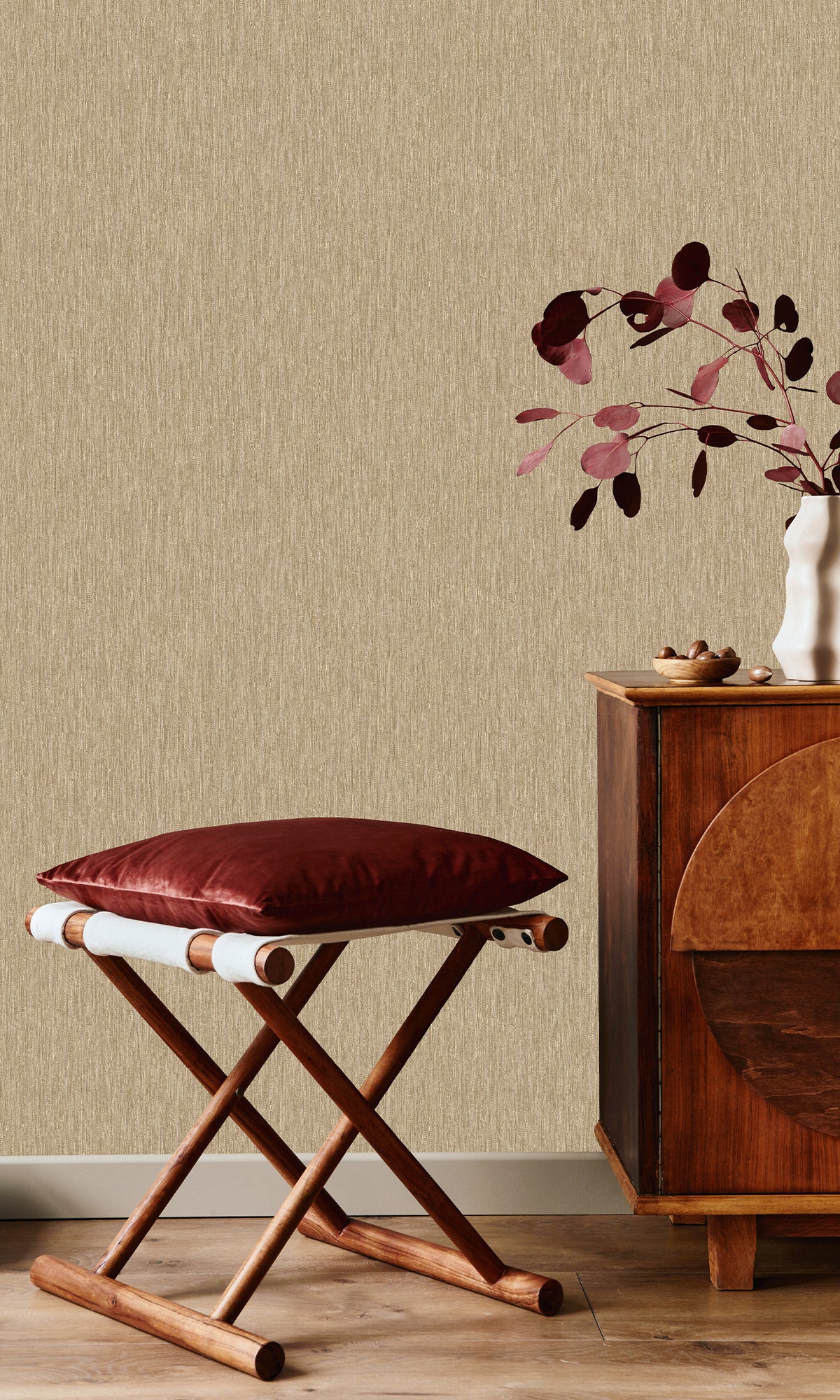 With its abstract, minimalist design that features vertical layers that create a subtle wicker effect, our Wicker Weave textured wallpaper adds depth and a refined tactile quality to your walls. Inspired by the beauty of woven textures along with metallic flecks interspersed throughout the design, it brings the wallpaper to life, reflecting light for a soft, elegant shimmer.
