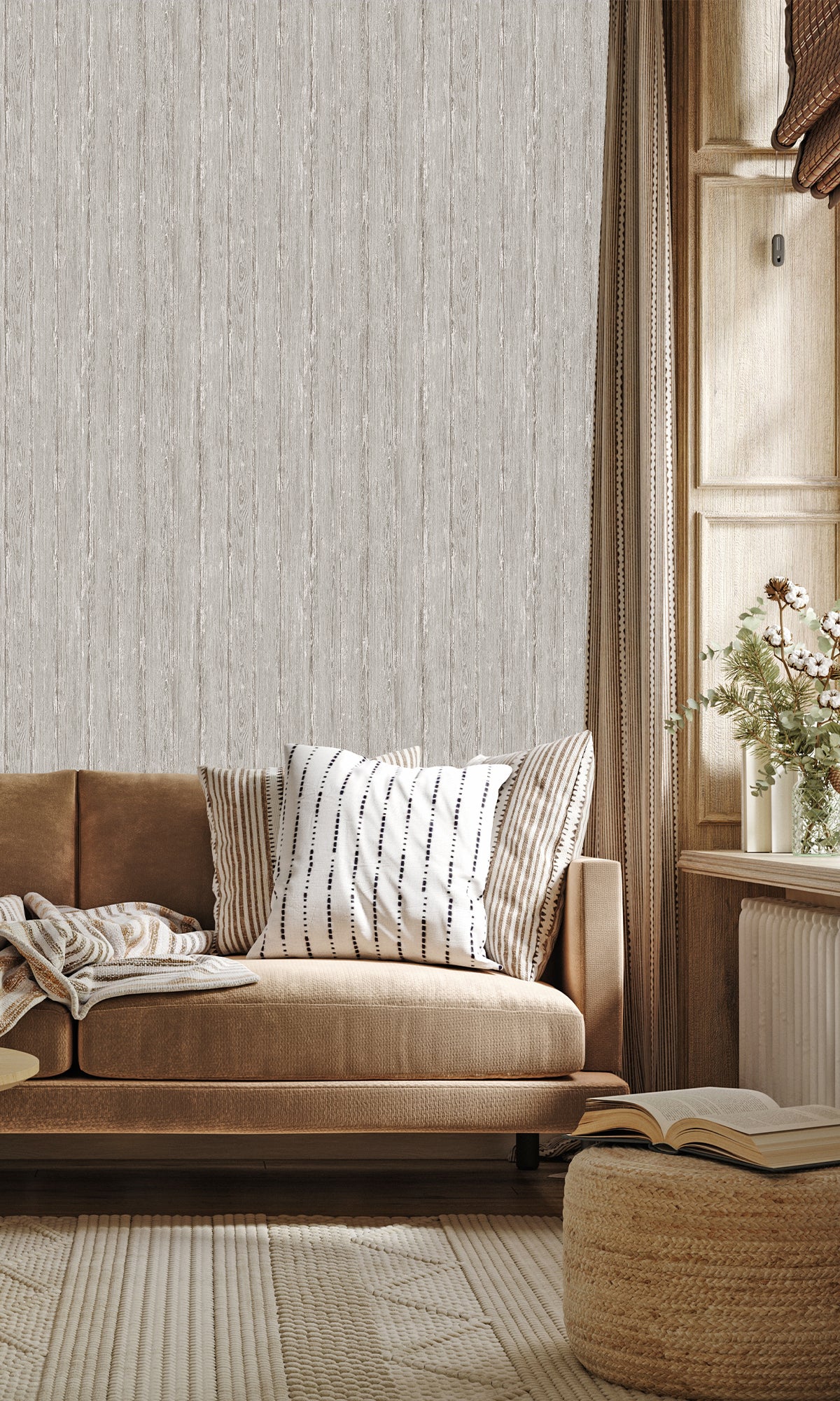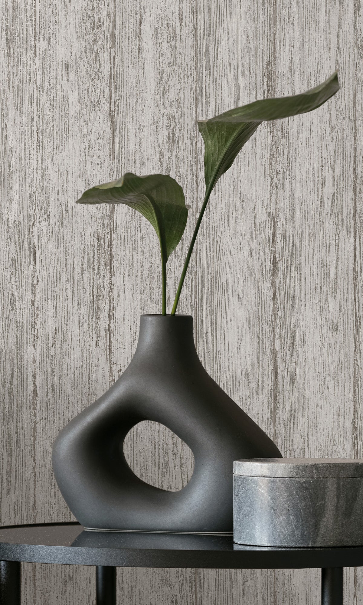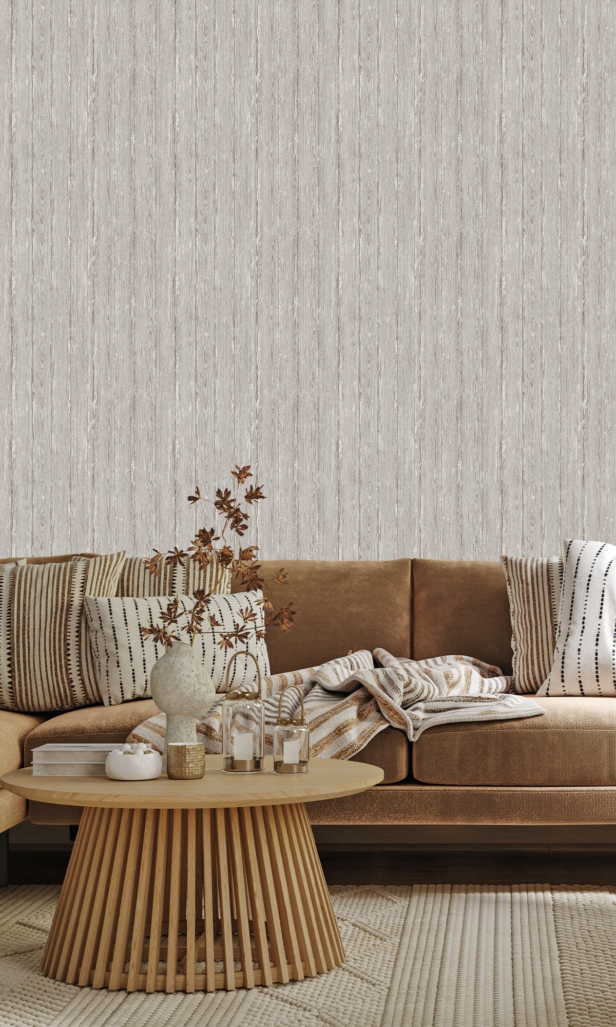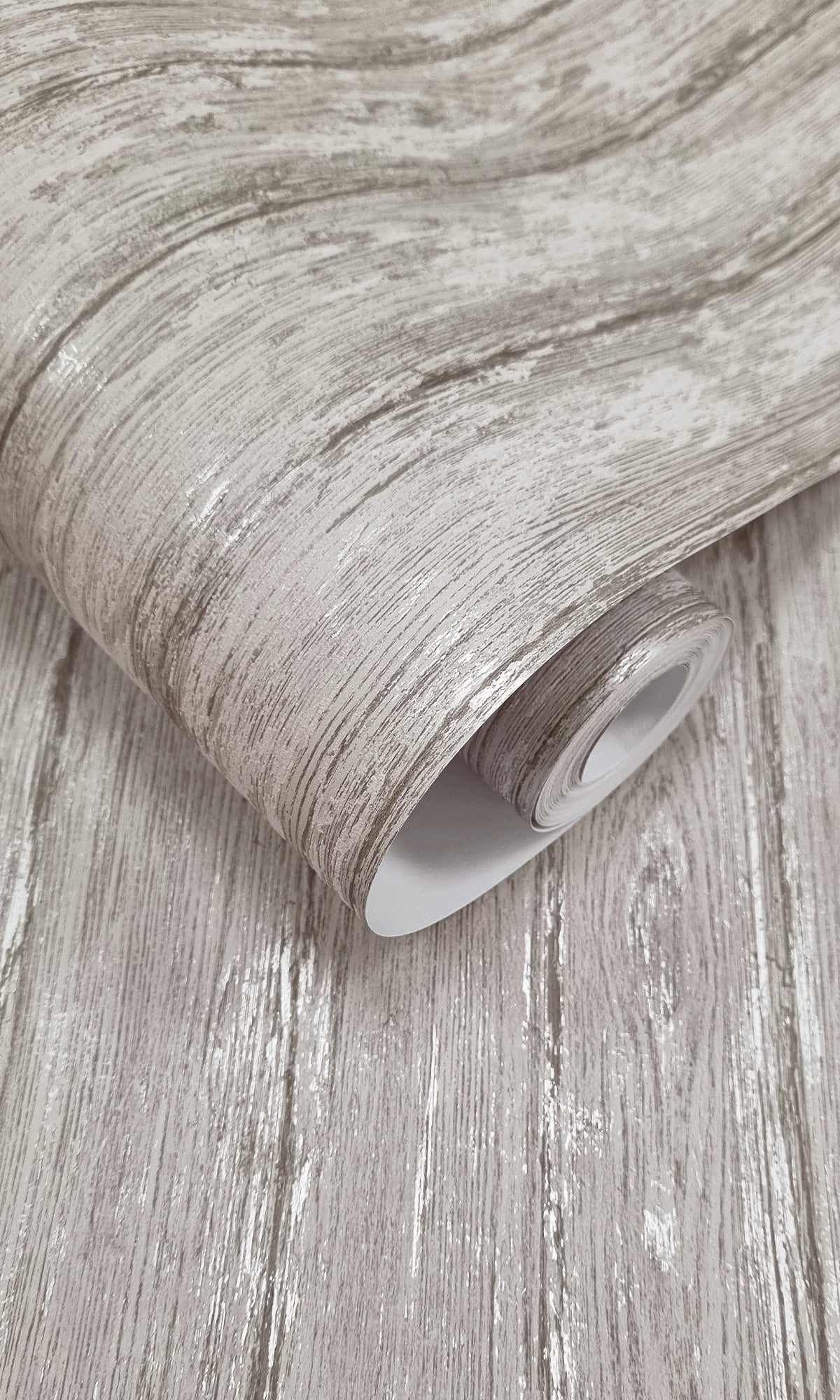 Embrace the beauty of weathered wood with this Rustic Timber Textured wallpaper. Designed to mimic the natural grain of aged timber, its textured surface brings warmth and character to any space. Metallic accents contrast against the rustic finish, adding a subtle shimmer that enhances its depth and charm.