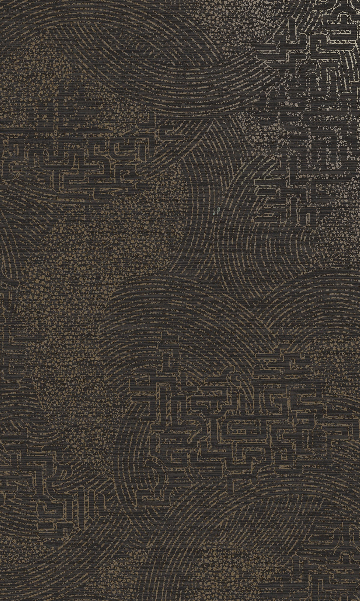 Introducing our Noir Fragmented Intertwined Geometric Abstract Wallpaper, a stunning wall covering that draws inspiration from the famous geological structure, the Eye of Sahara. This unique wallpaper captures the essence of the eroded rings found in nature, translating them into a fragmented abstract design composed of intertwined patterns of curved lines, mazes, and irregular dots. The result is a visually striking piece that offers depth, texture, and a sense of movement, perfect for creating a focal point in any room.