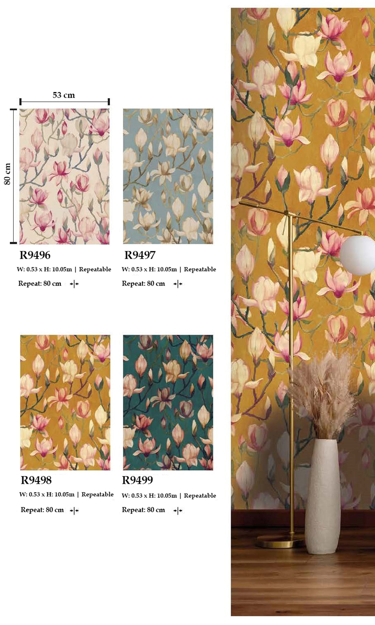 Plus, with good lightfastness, the vibrant magnolia design will stay bright even in well-lit rooms. Whether you're creating a serene bedroom retreat, a sophisticated study, or a welcoming hallway, our Magnolia Flowers wallpaper brings a touch of timeless beauty to your home decor. Enjoy the perfect blend of style and practicality with this elegant wallpaper.