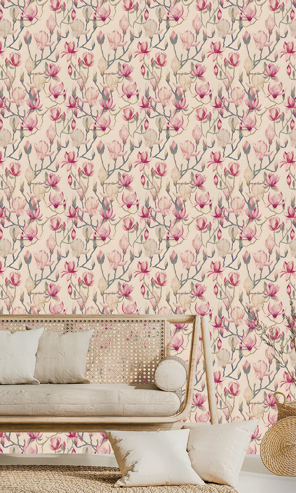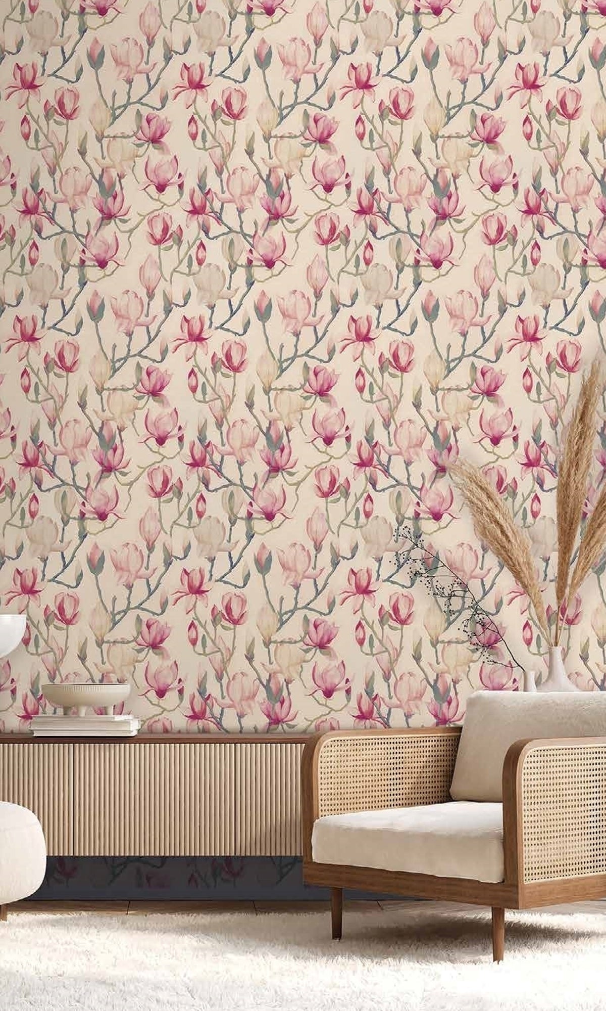 Bring the beauty of spring into your home with our Magnolia Flowers wallpaper, perfect for bedrooms, studies, hallways, and living rooms. This charming design features a stunning assortment of magnolia flowers in different stages of bloom, adding a touch of elegance and natural beauty to any space. Made from high-quality non-woven paper, it combines durability with a luxurious feel.
