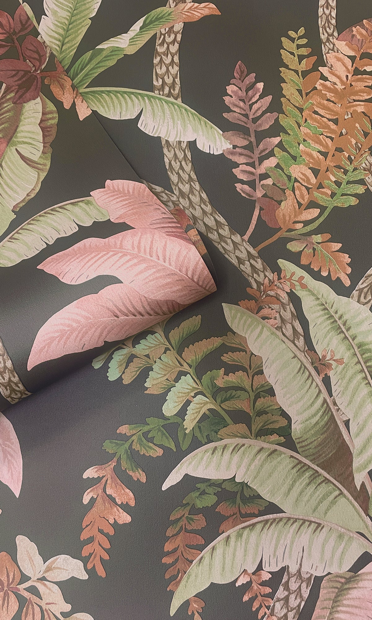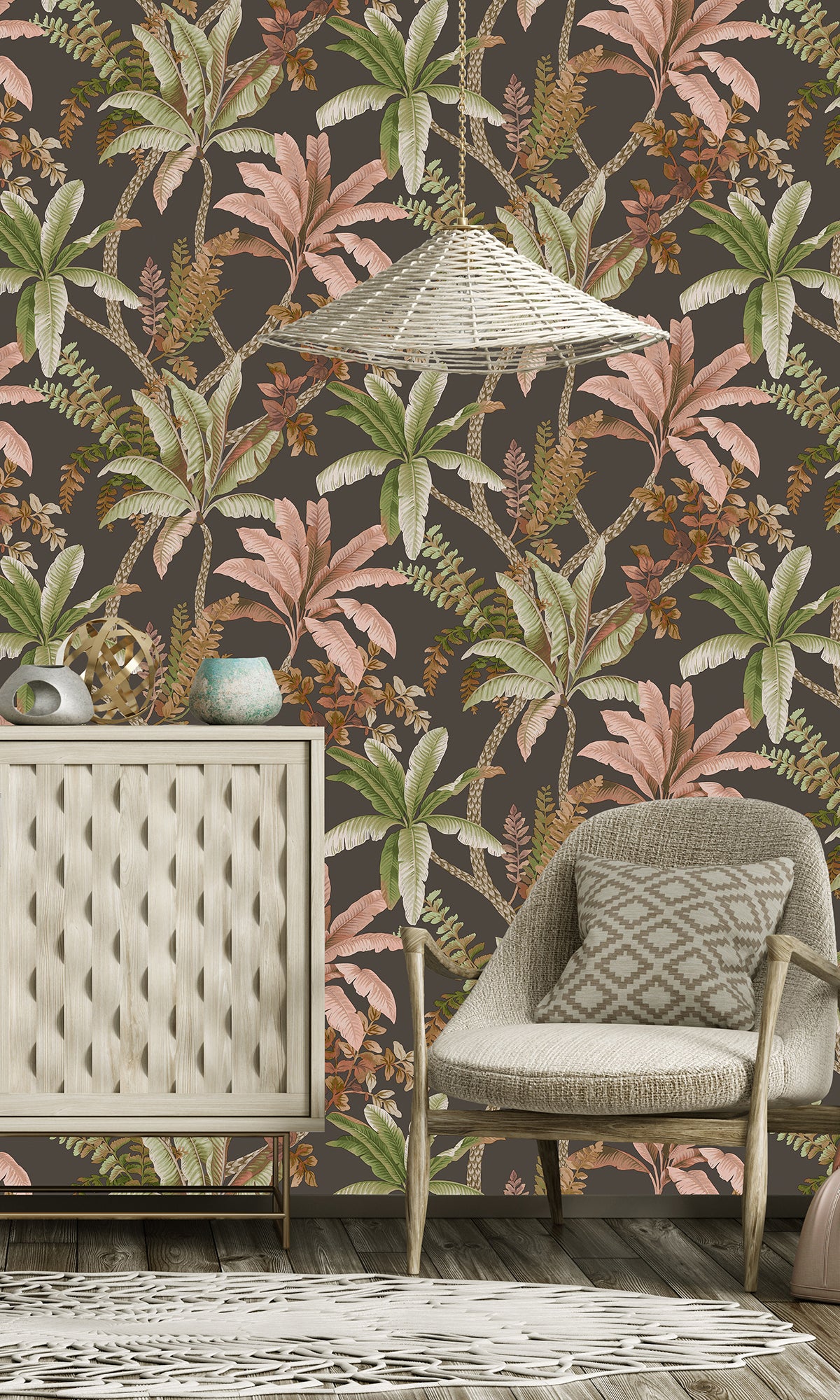 Charcoal Serene Tropical Oasis Wallpaper R9605