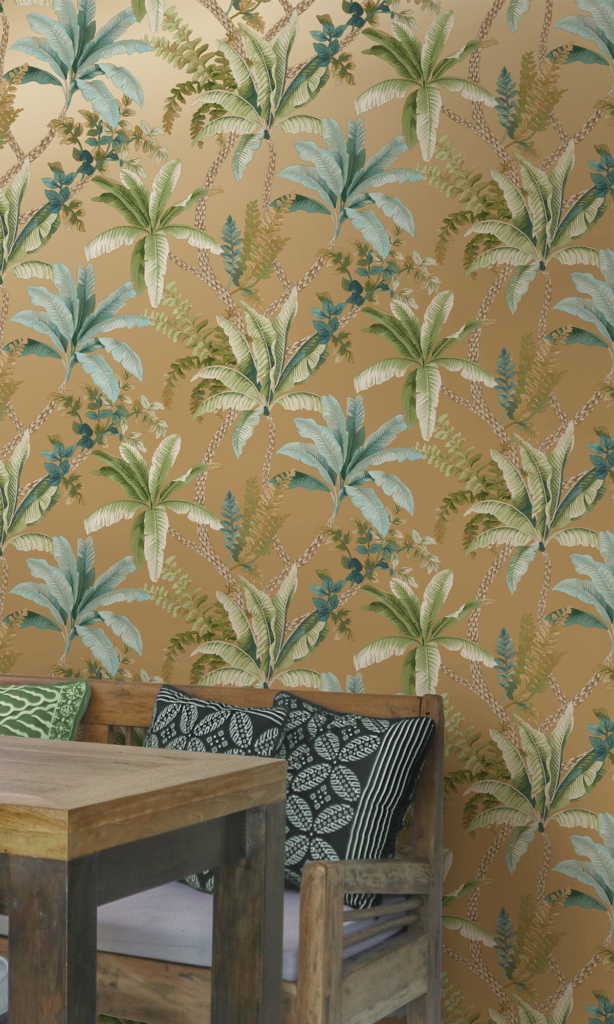 Gold Serene Tropical Oasis Wallpaper R9604