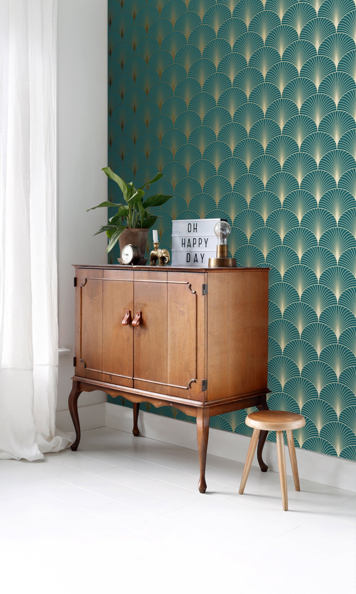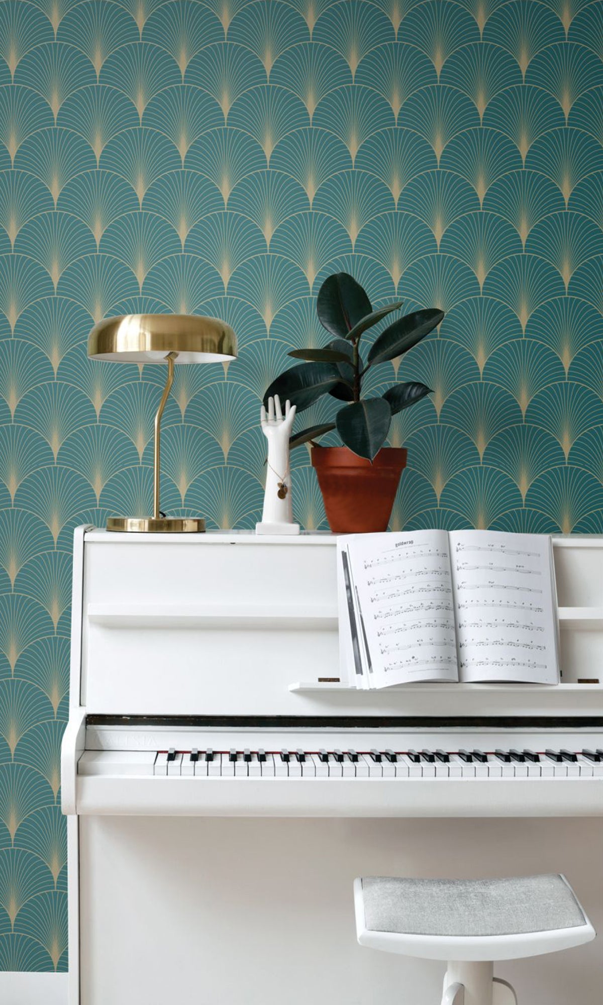 Revitalize your space with our Art Deco retro fan wallpaper, perfect for bedrooms, studies, teen rooms, hallways, and living rooms. This captivating wallpaper features a retro fan design that adds a touch of vintage charm to any room. Crafted from durable non-woven paper, it combines resilience with a luxurious texture.