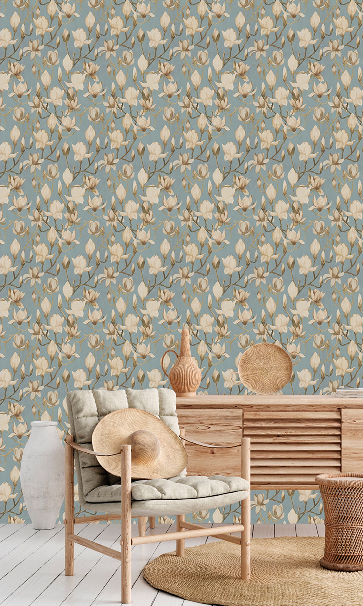 Plus, with good lightfastness, the vibrant magnolia design will stay bright even in well-lit rooms. Whether you're creating a serene bedroom retreat, a sophisticated study, or a welcoming hallway, our Magnolia Flowers wallpaper brings a touch of timeless beauty to your home decor. Enjoy the perfect blend of style and practicality with this elegant wallpaper.