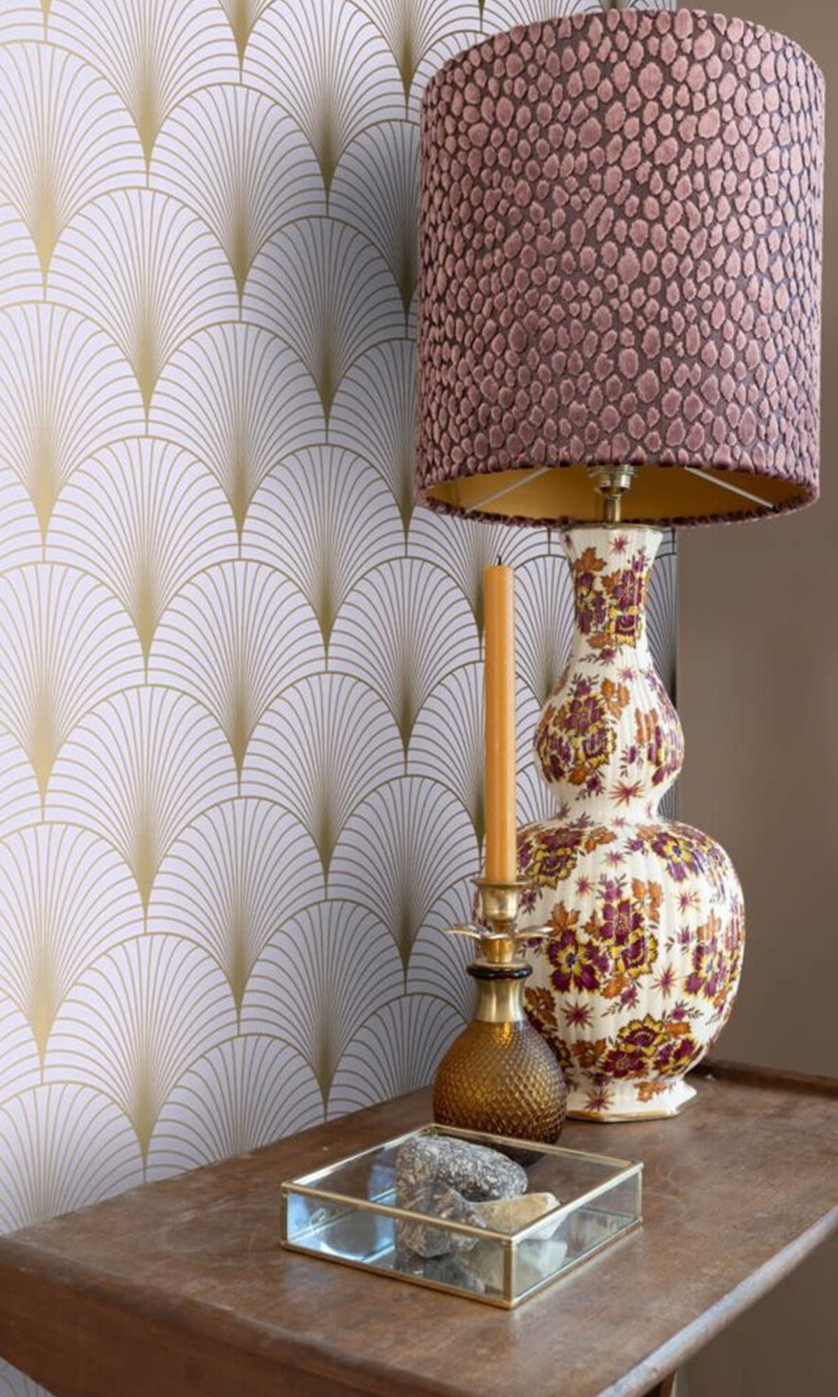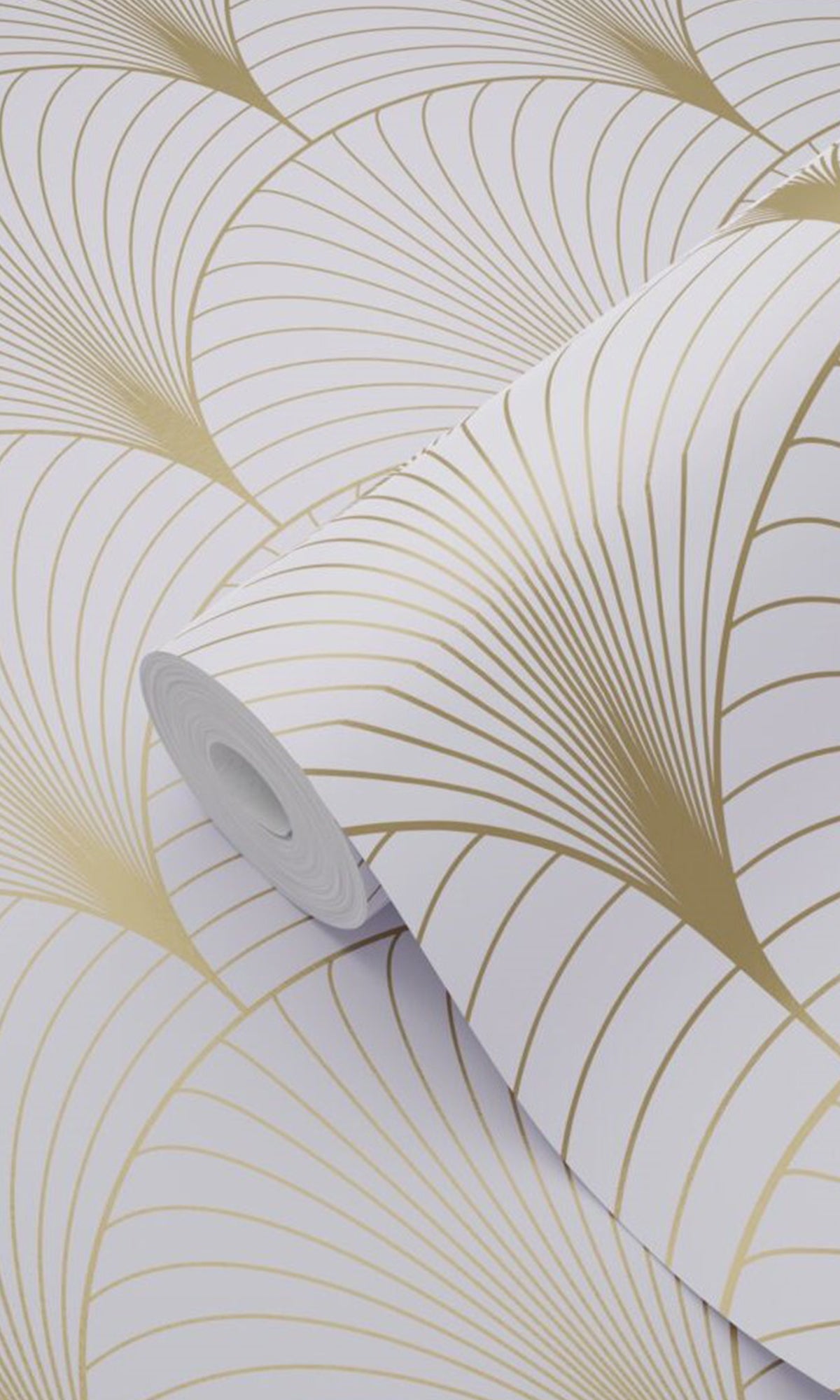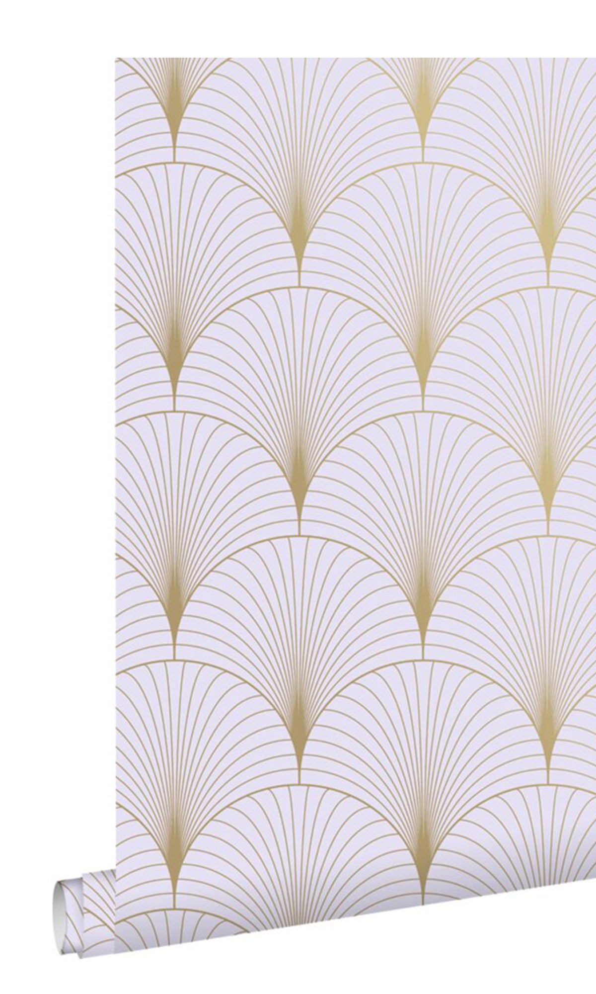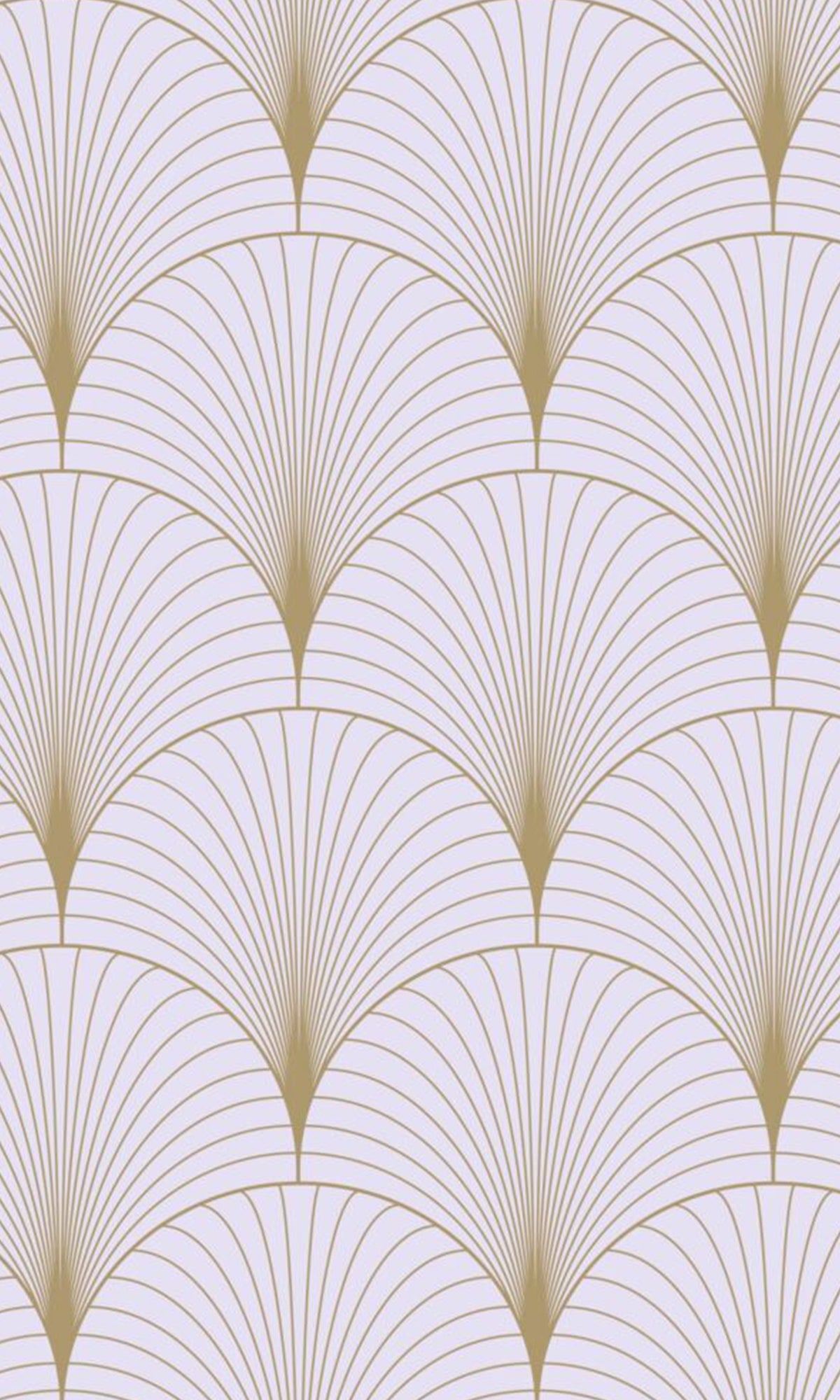 Lilac Purple and Gold Art Deco Motif Wallpaper R9447