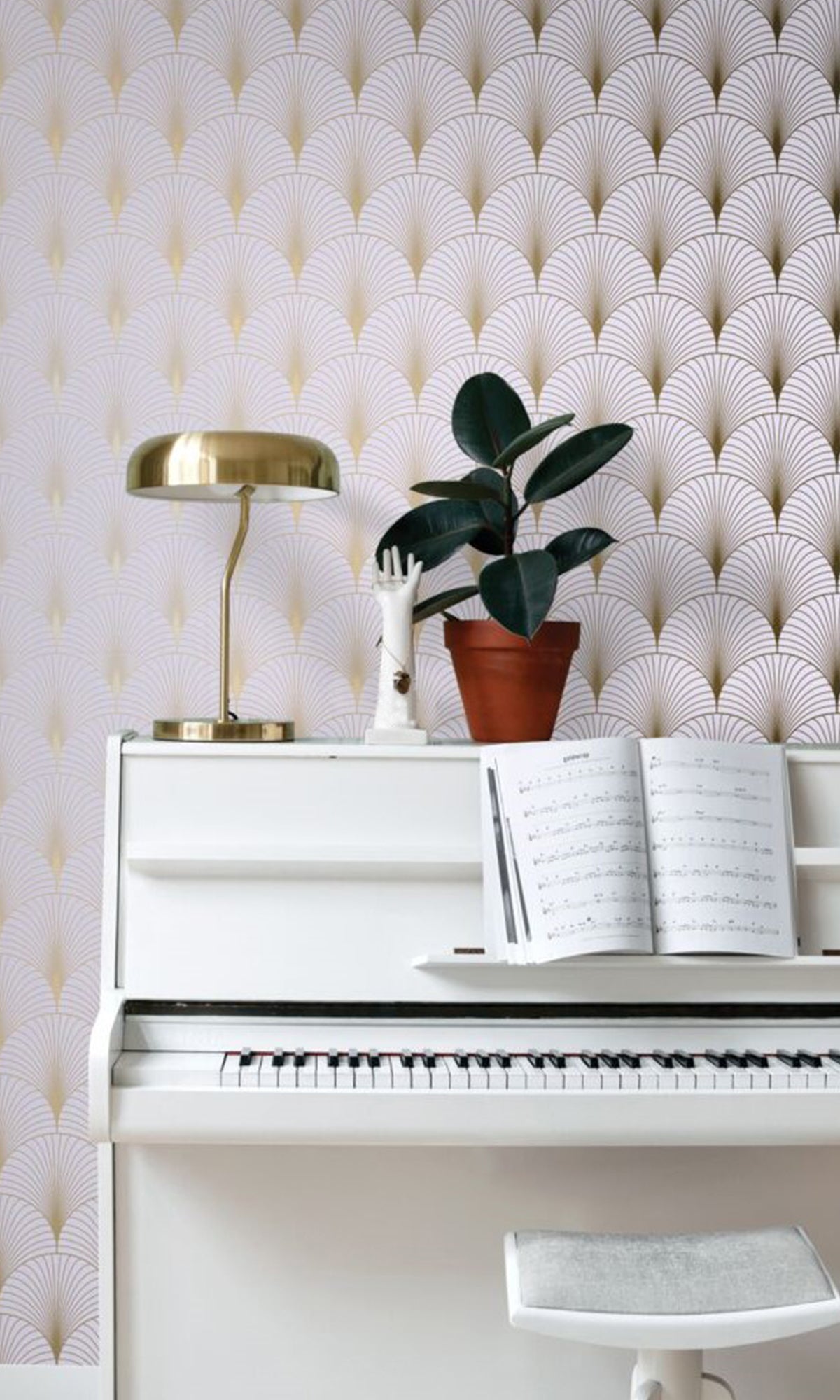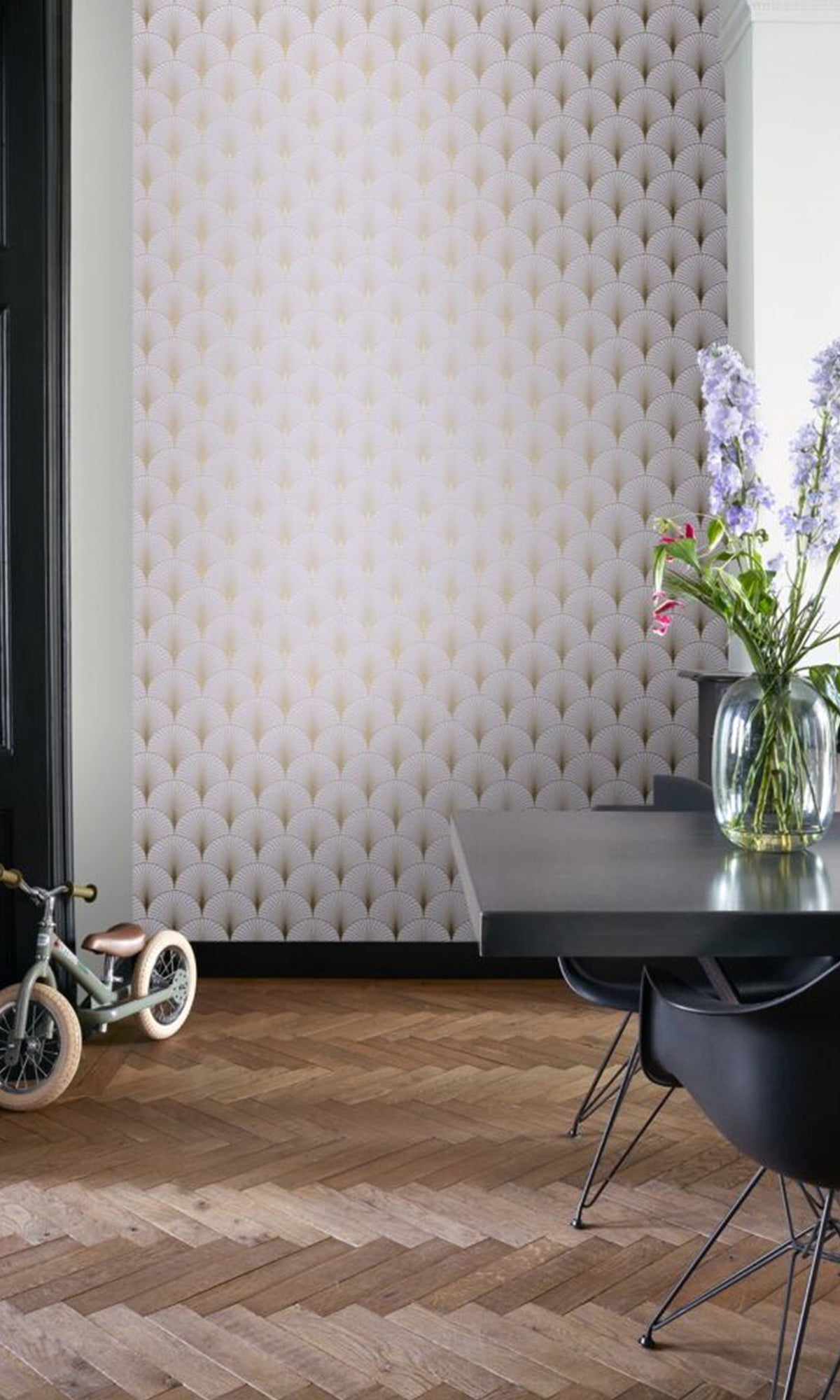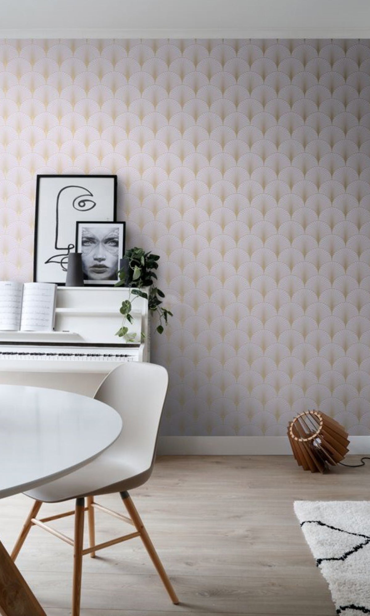 Revitalize your space with our Art Deco retro fan wallpaper, perfect for bedrooms, studies, teen rooms, hallways, and living rooms. This captivating wallpaper features a retro fan design that adds a touch of vintage charm to any room. Crafted from durable non-woven paper, it combines resilience with a luxurious texture.