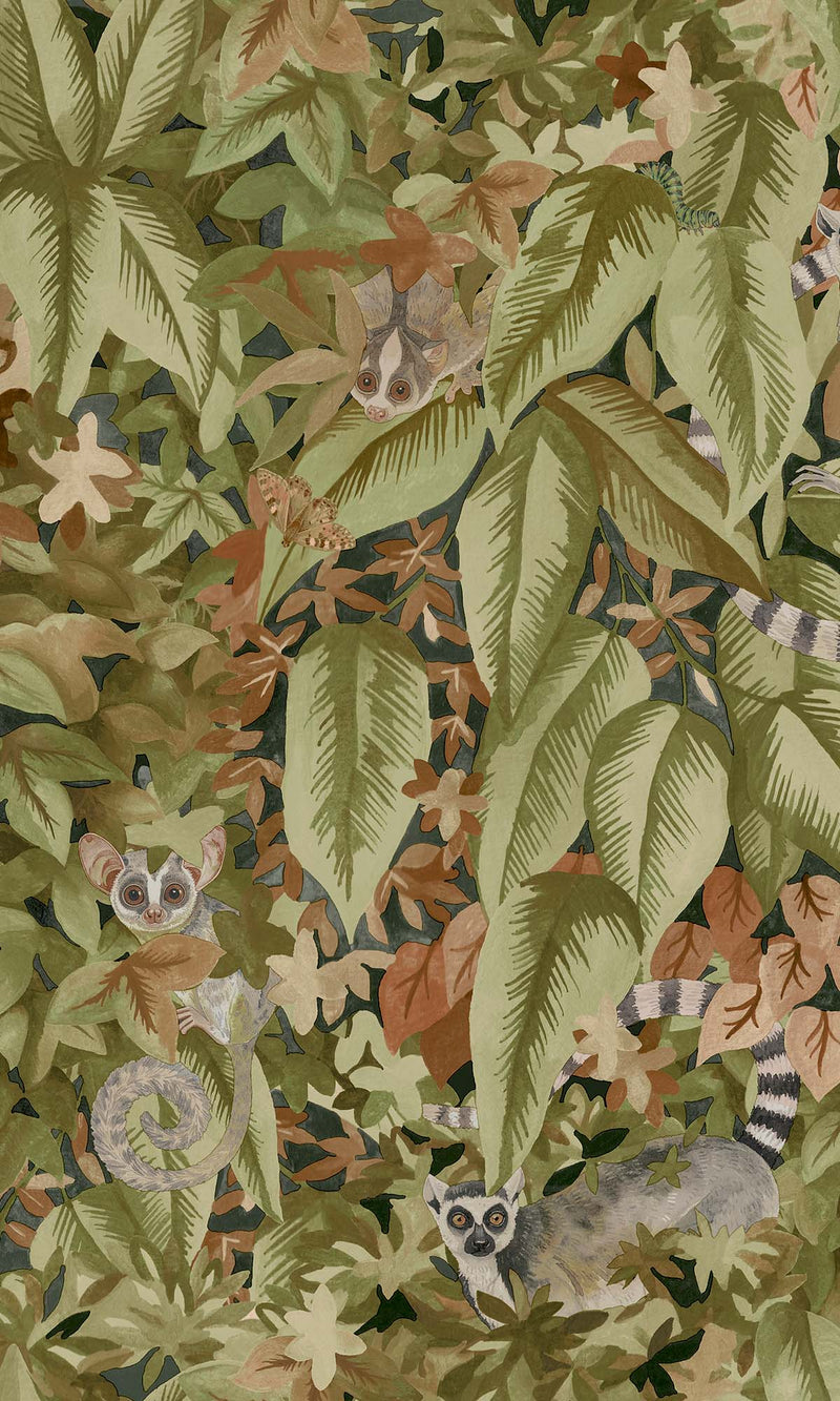 Rust/Green Lush Foliage Wallpaper R10261