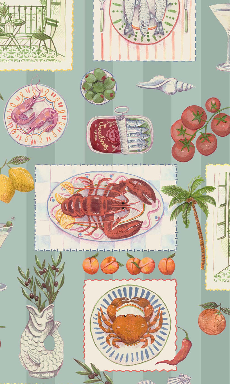 Blue Framed Mediterranean Cuisine Wallpaper R10289