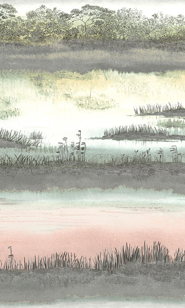 Terracotta Hazy Digital Printed Trees Wallpaper R9589