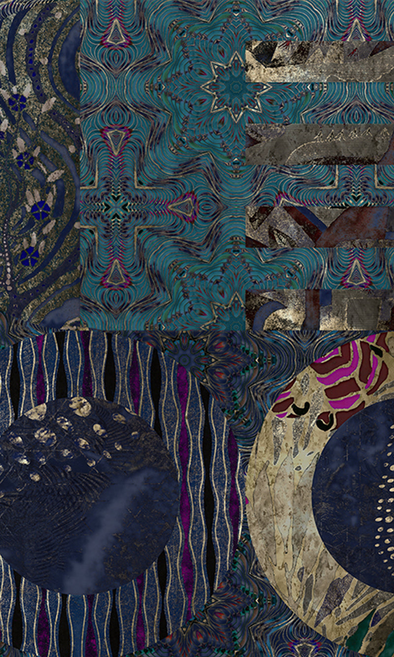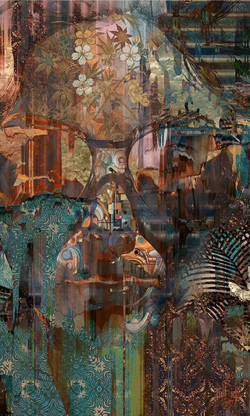 Copper Botanical Ogee Collage Mural Wallpaper M2560