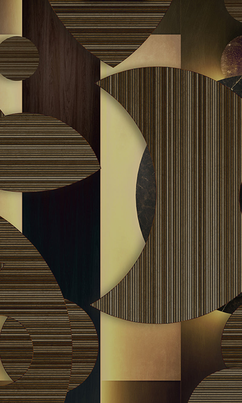 Black Gold Striped Mosaic Mural Wallpaper M2544