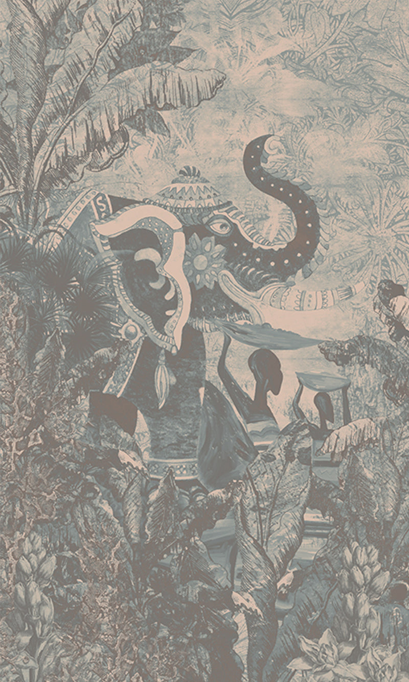 Ash Blue Enchanting Tropical Jungle Mural Wallpaper M2554