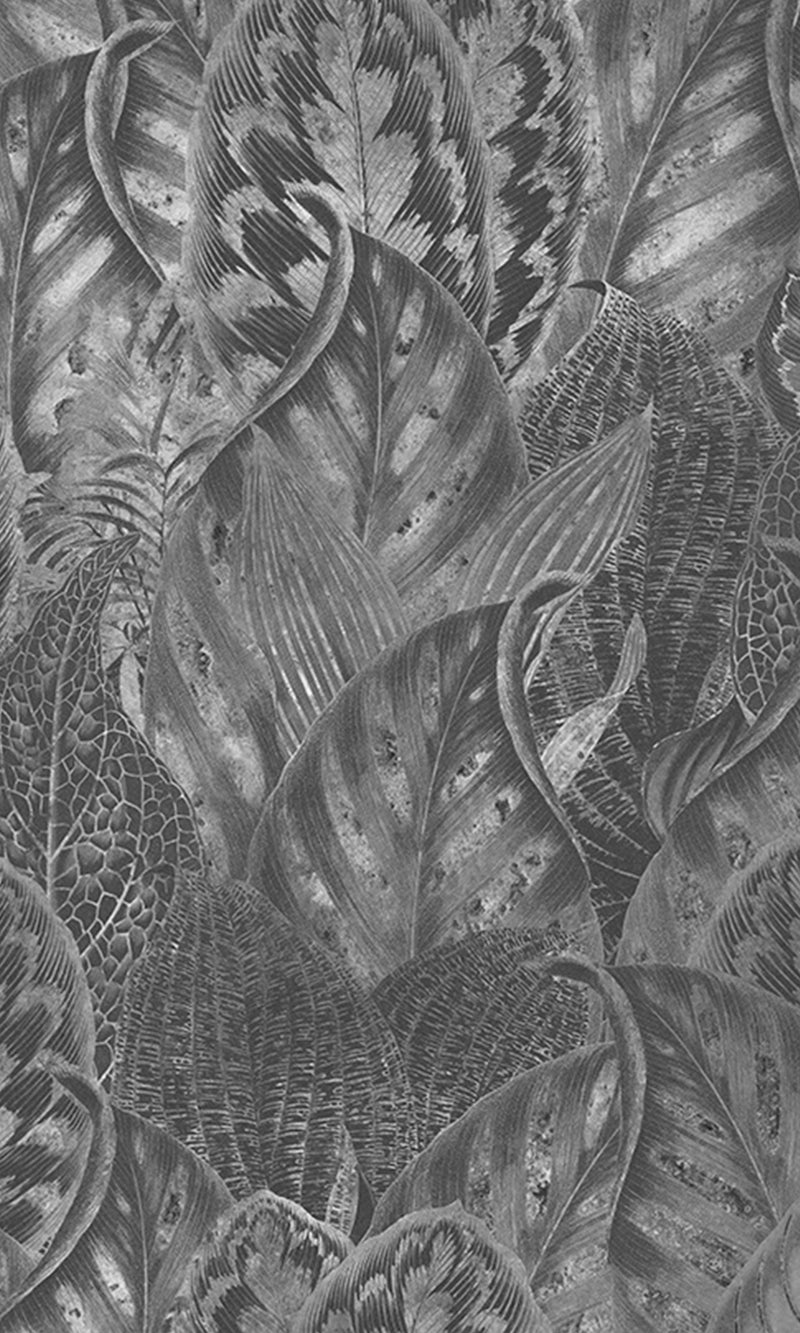 Charcoal Vibrant Leafy Collage Mural Wallpaper M2556