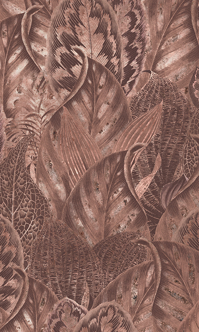 Copper Vibrant Leafy Collage Mural Wallpaper M2557