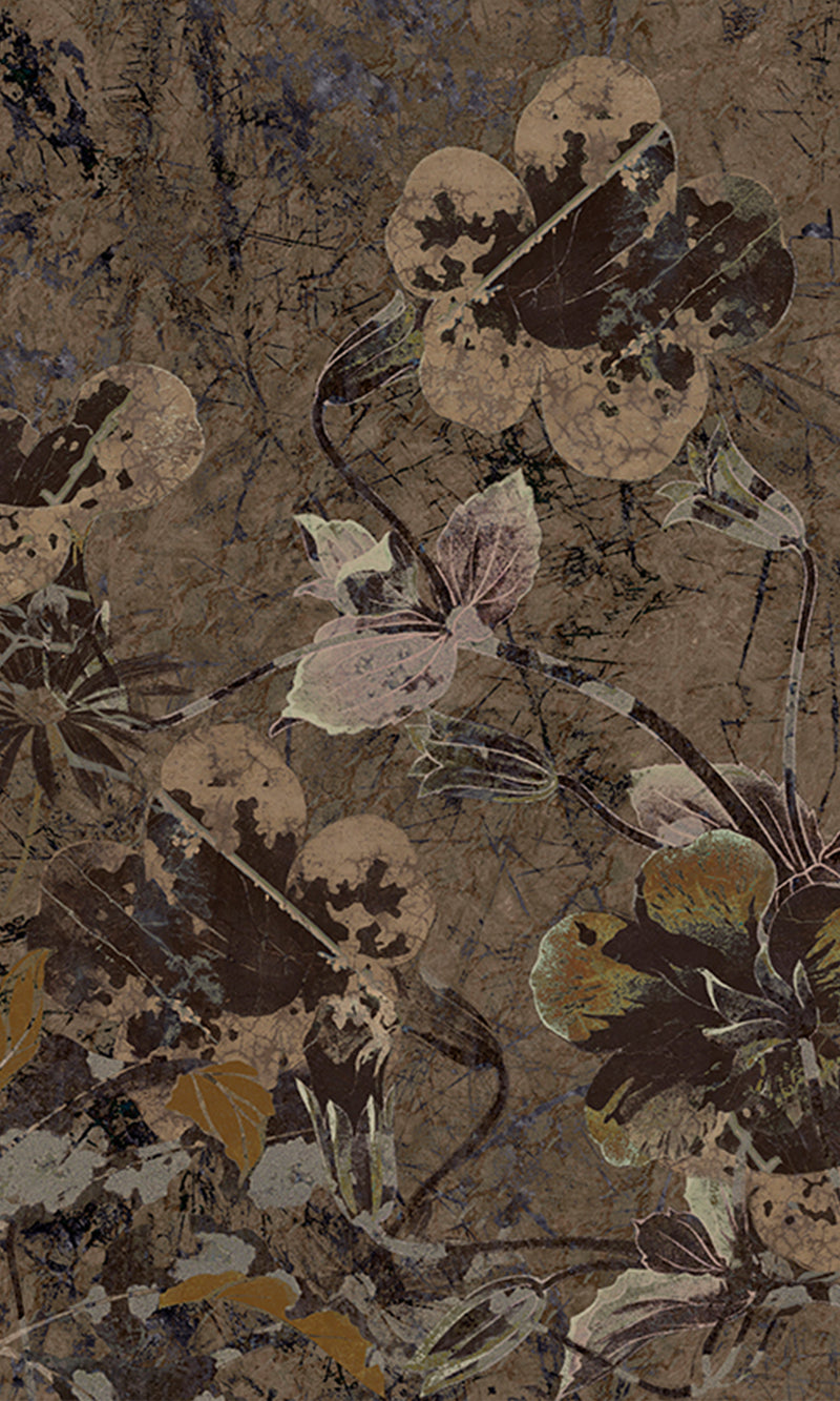 Copper Brown Enchanted Floral Abstract Mural Wallpaper M2562