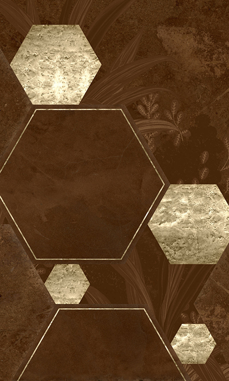 Charcoal & Gold Honey Comb in Geometric Design Wallpaper R7656