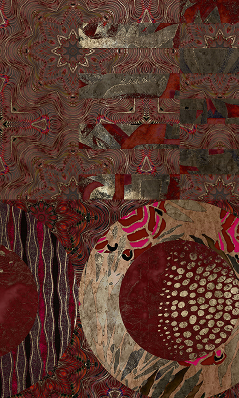 Burgundy Geometric Collage Mural Wallpaper M2575