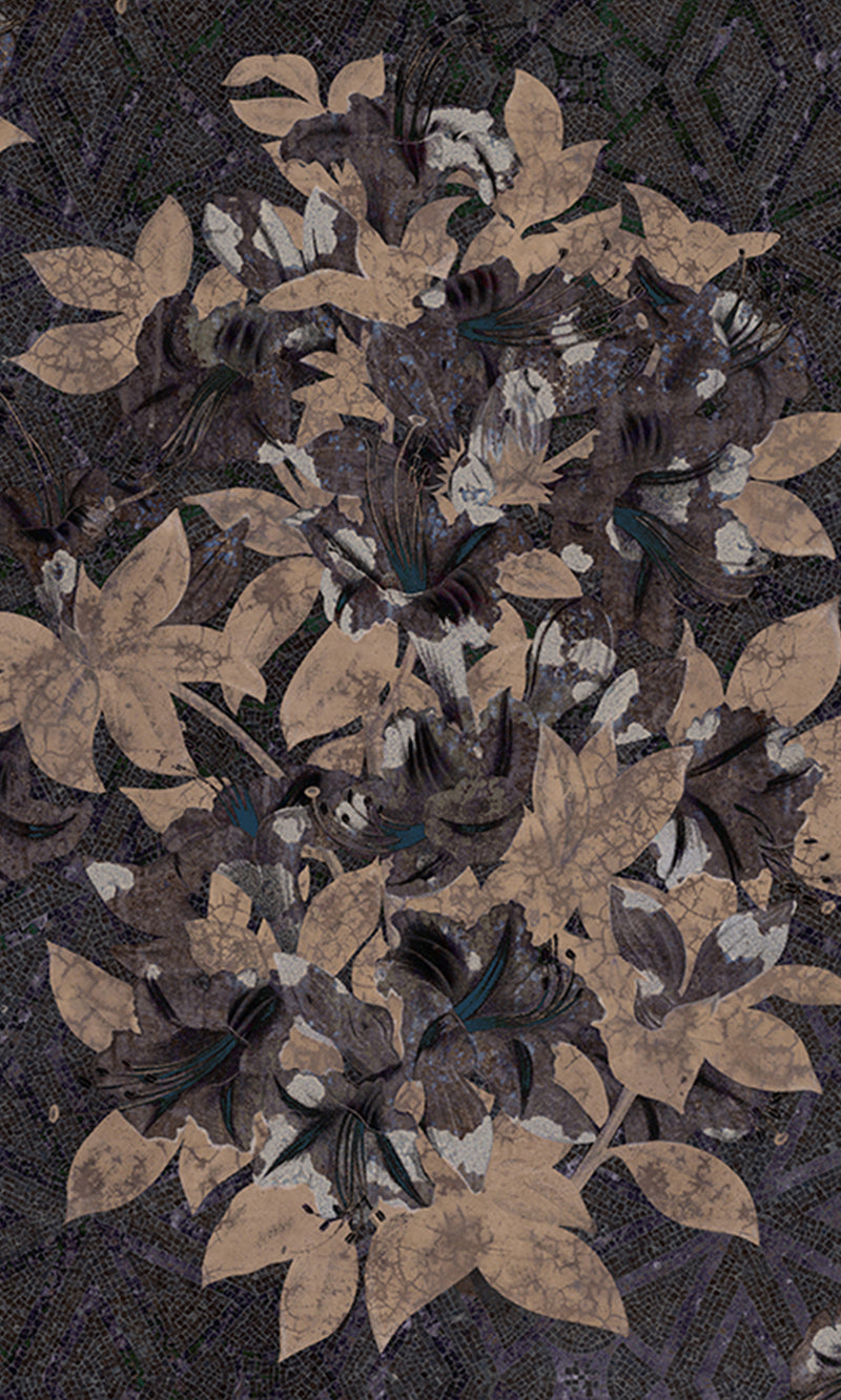 Charcoal Geometric Floral Mosaic Mural Wallpaper M2577