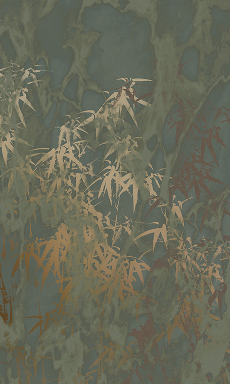 Dark Moss Green Abstract Bamboo Forest Mural Wallpaper M2584