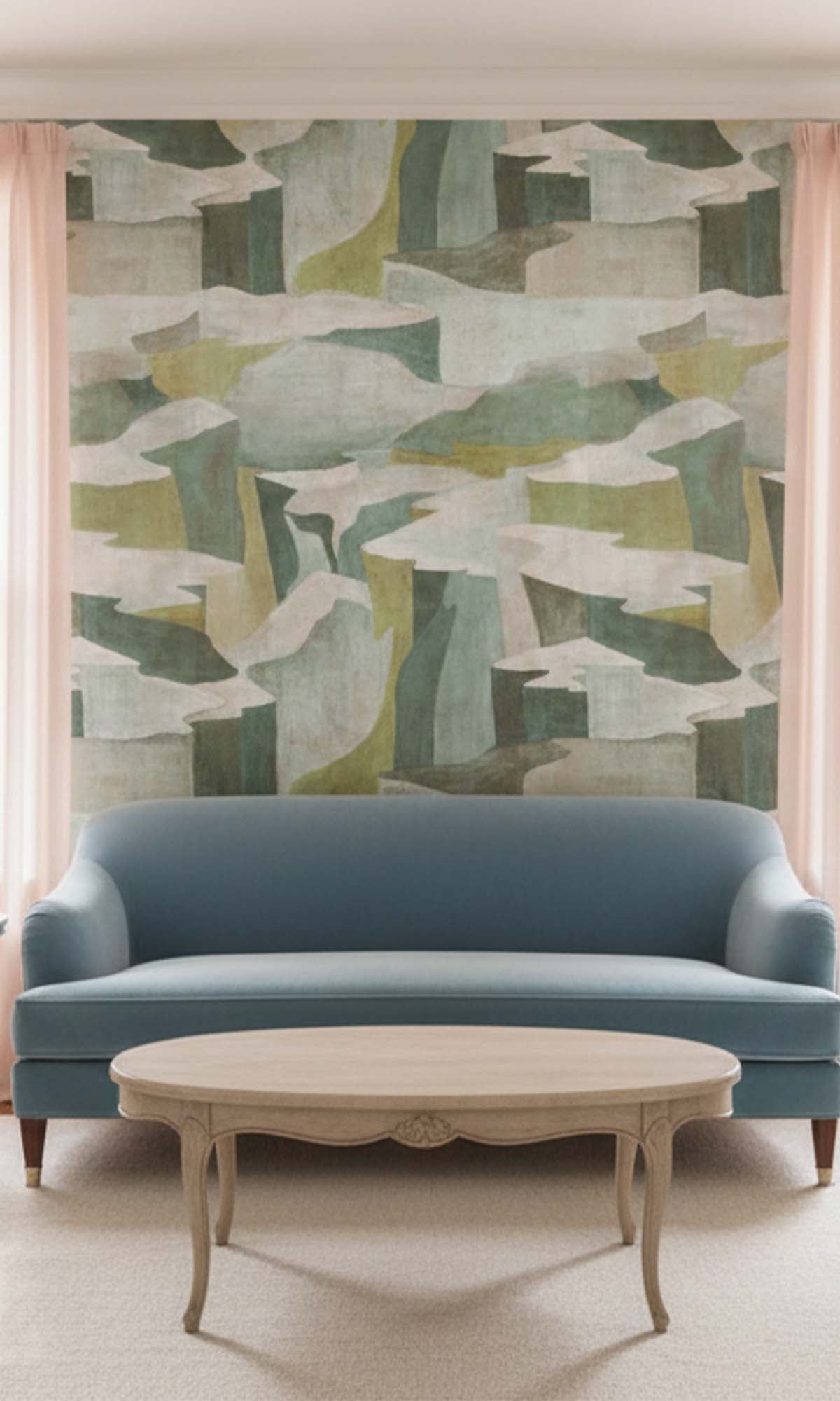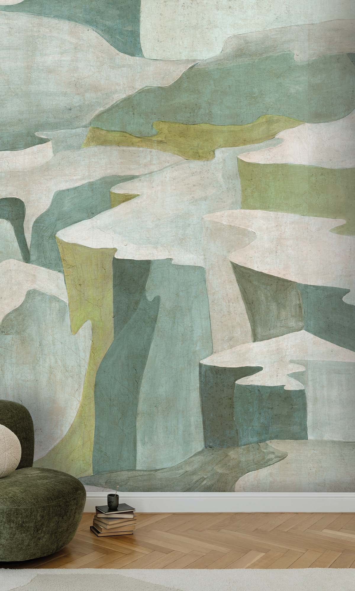 Give your space a fresh vibe with the Abstract Coastlines mural wallpaper. Inspired by dreamy watercolor paintings, this piece captures the feeling of coastlines and distant mountains, all blending together where land, sea, and sky meet. Soft washes of color and bold, brush-like shapes create a landscape that feels alive and open.