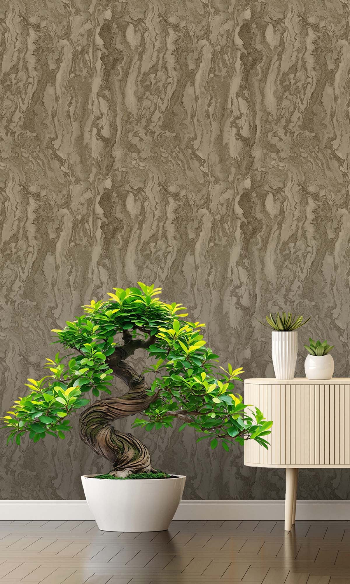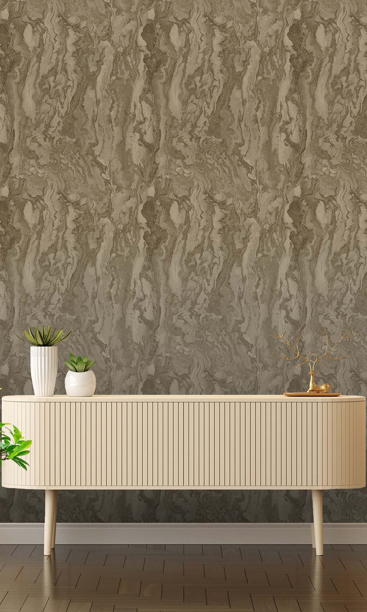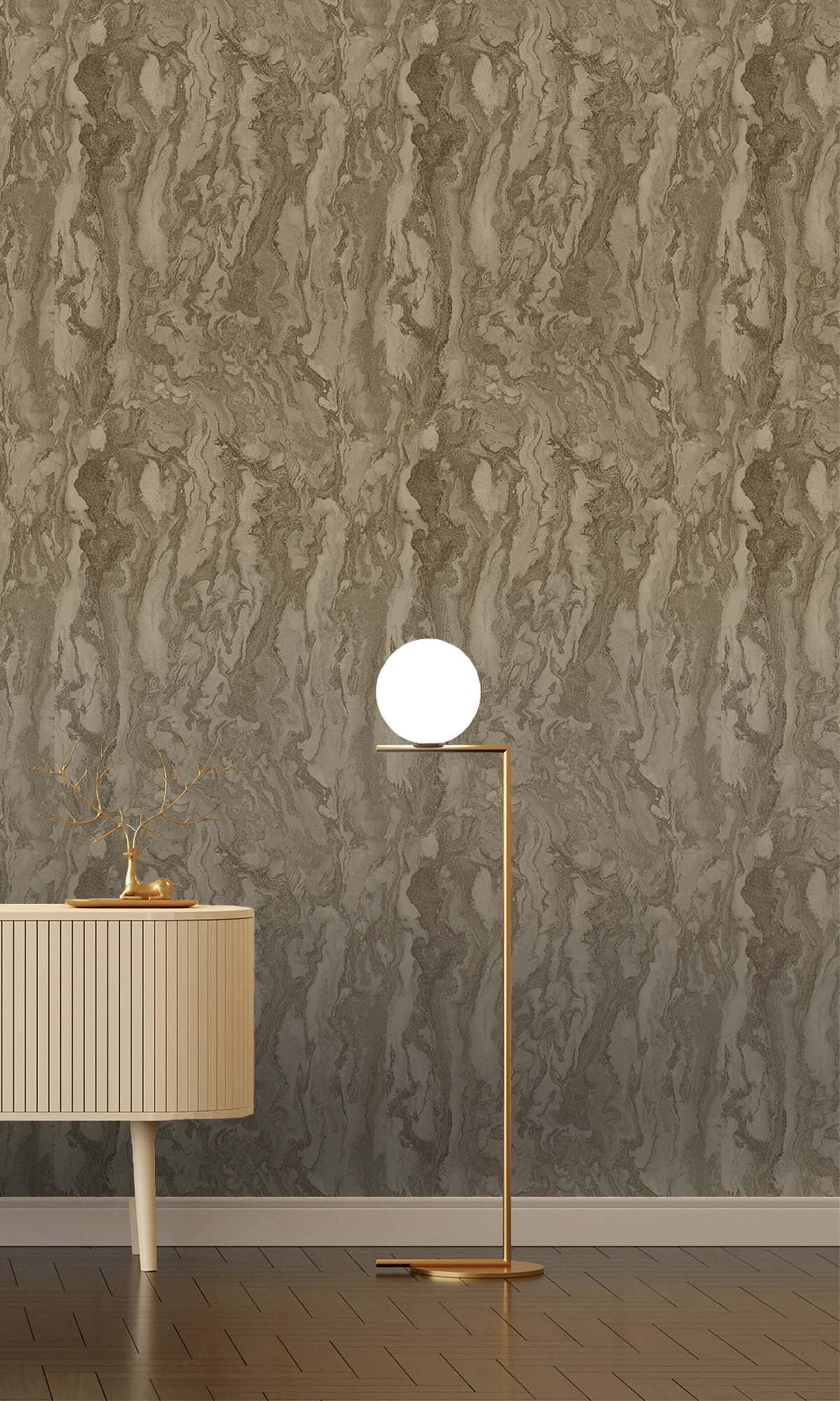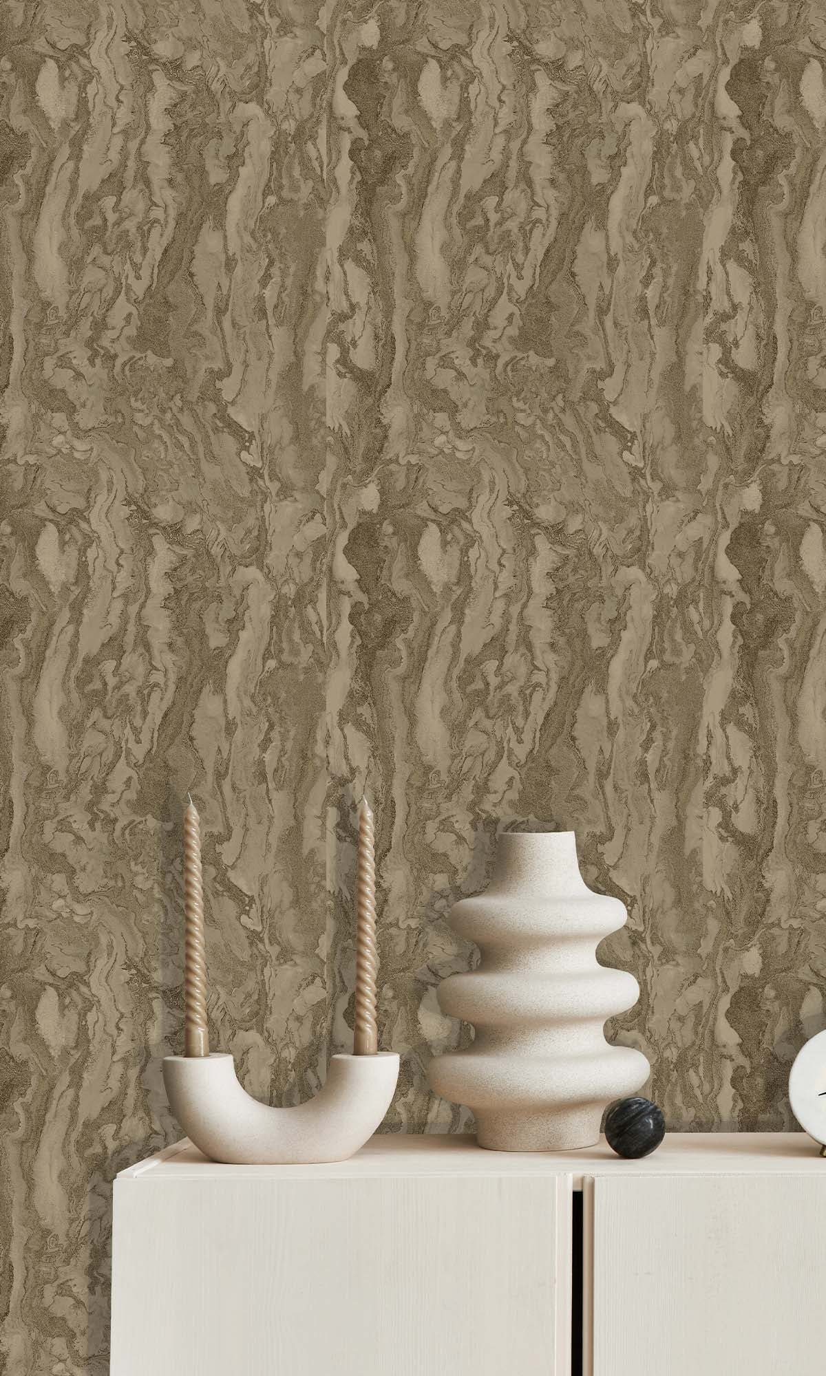 This wallcovering draws you in with its marble-inspired look, but there’s more going on once you get closer. Metallic highlights catch the light just right, and the raised acrylic textures feel as good as they look—almost like you’re running your hand over carved stone. The layers create real depth, so it’s not just flat and pretty; it has some presence, almost architectural.