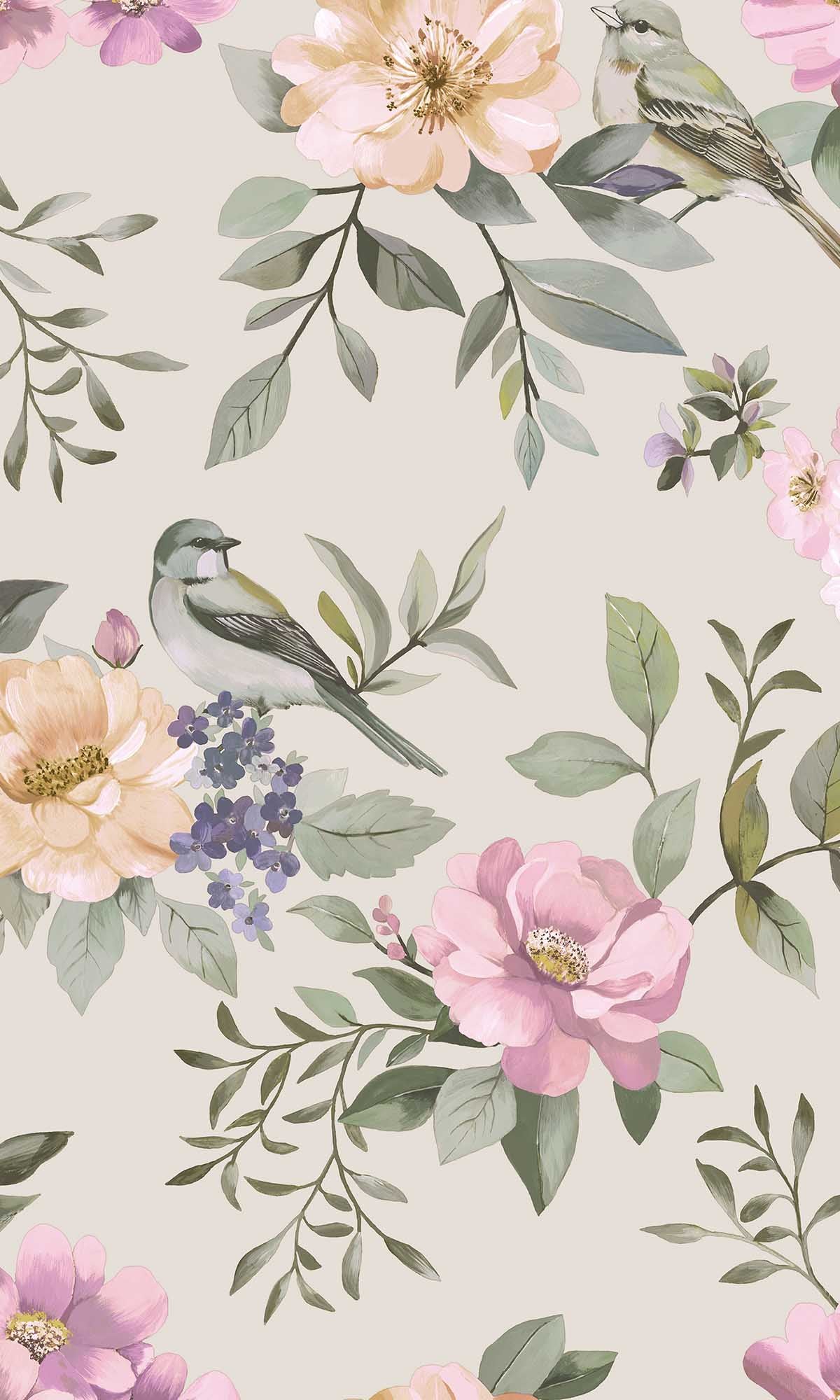 This Birds in a Garden wallpaper isn’t just decor—it’s like letting your walls throw a secret garden party. Imagine tiny birds gossiping in the petals, flowers bursting out in color like they just couldn’t help themselves, and all of it painted with that dreamy, artsy touch. The whole scene feels alive, like you might catch a petal falling or a bird stretching its wings if you blinked at the right moment.