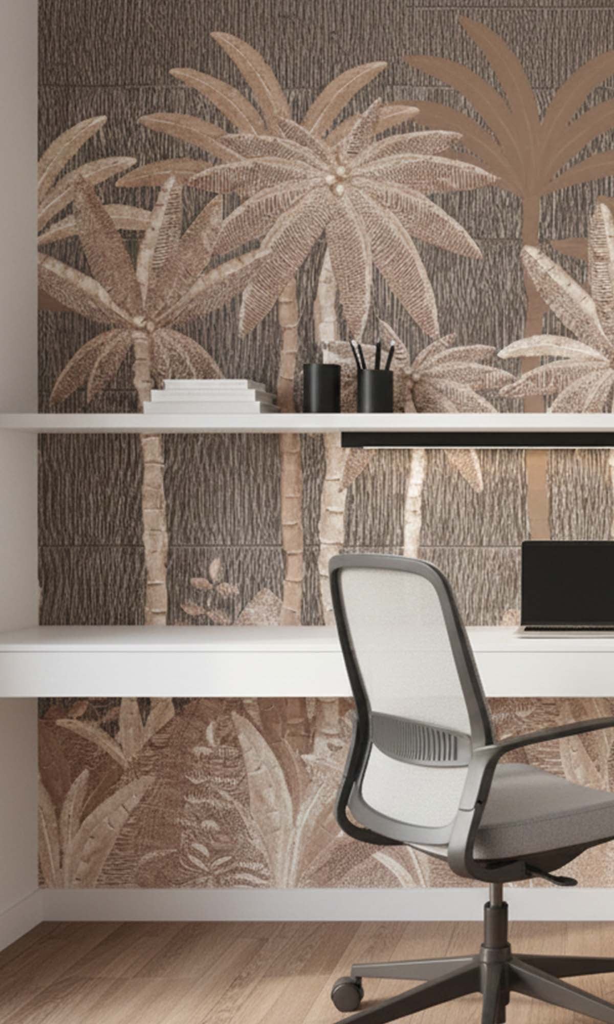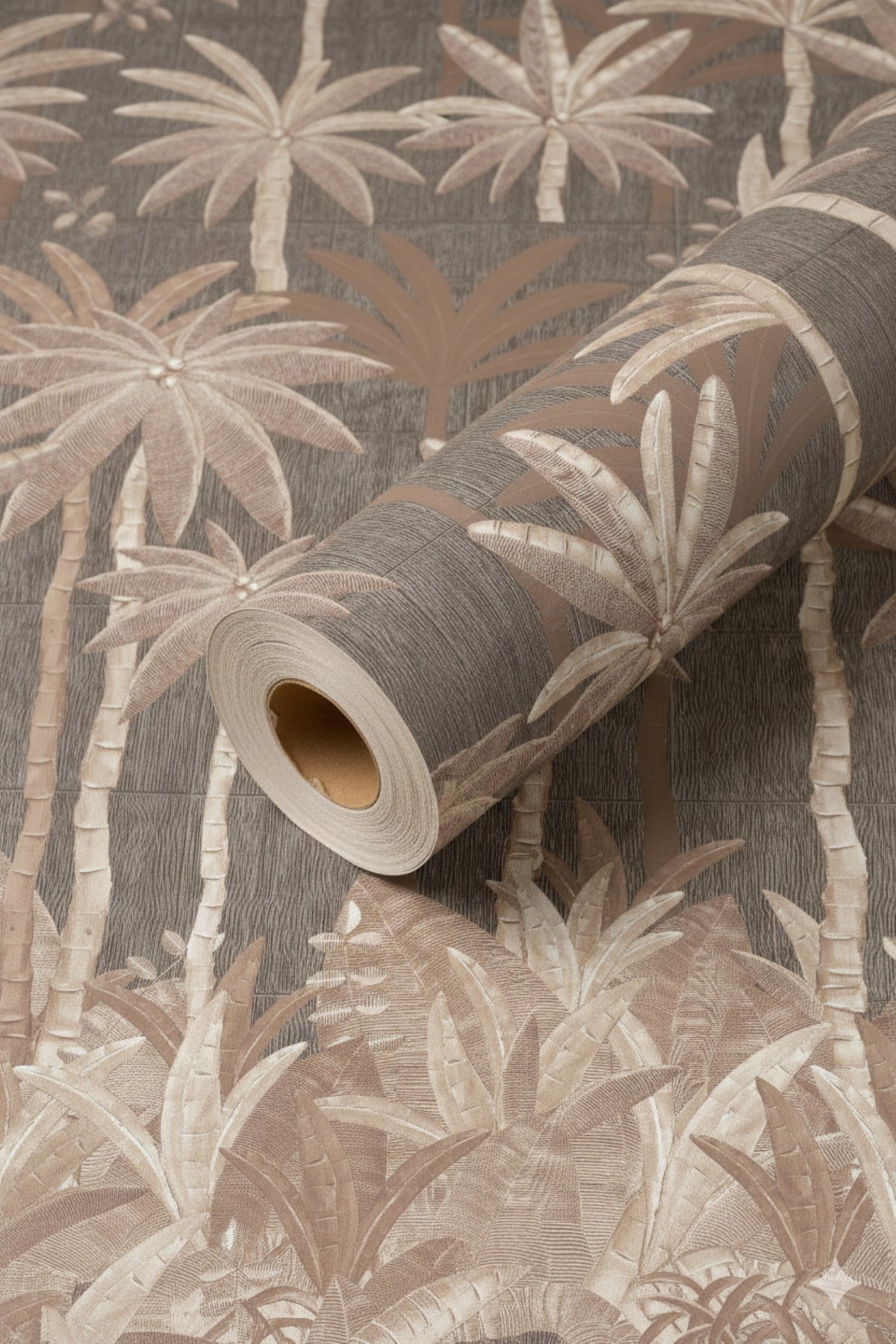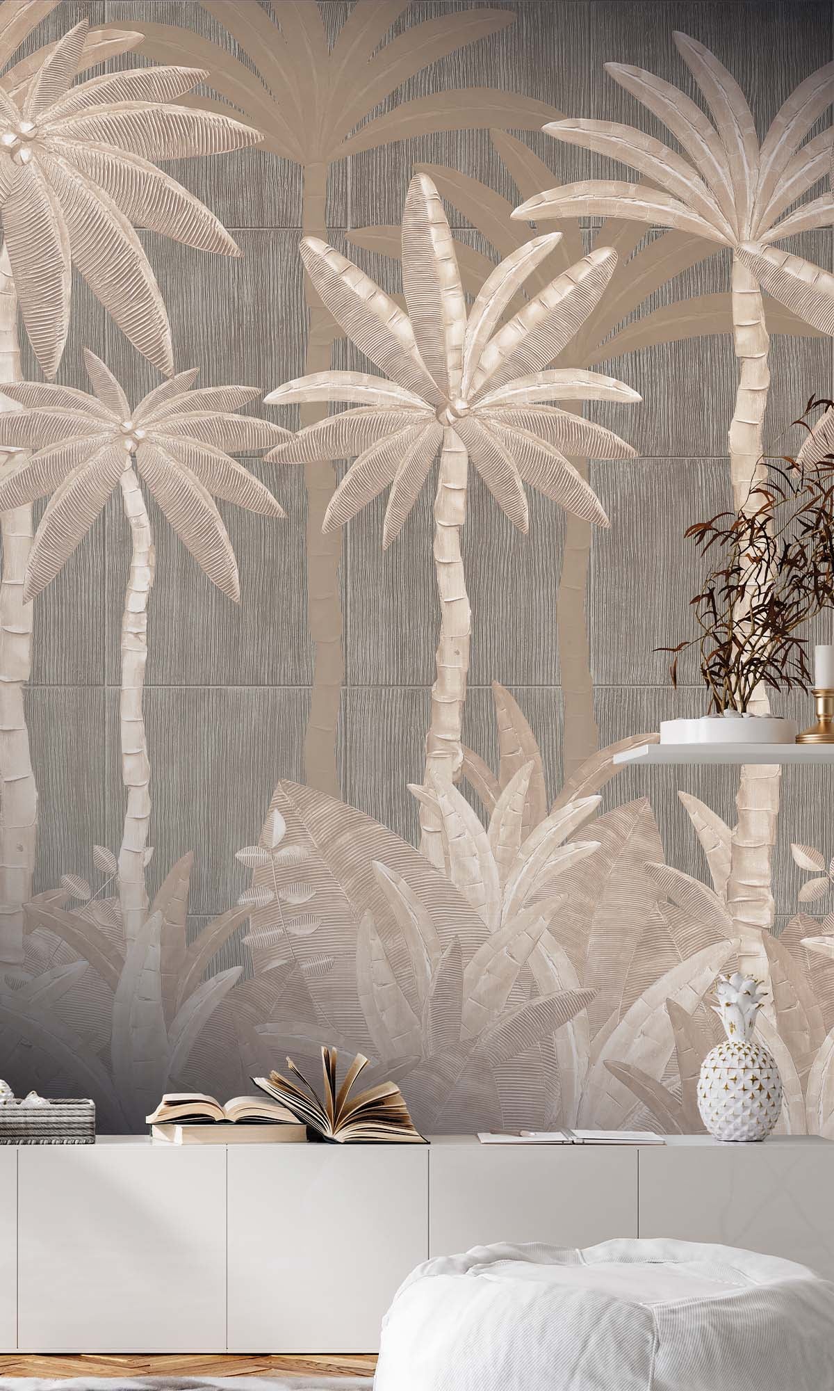 Wanna make a statement? This Tropical Palm Leaf mural doesn’t just sit quietly on your wall—it practically leaps out at you. We're talking big, bold jungle vibes—towering palm trees, thick layers of green, all that good stuff. The dark background really cranks up the drama, while those lighter palms pop like they’re catching a spotlight. It’s got that luxe, moody thing going on, like you just stepped into a boutique hotel in Bali.
