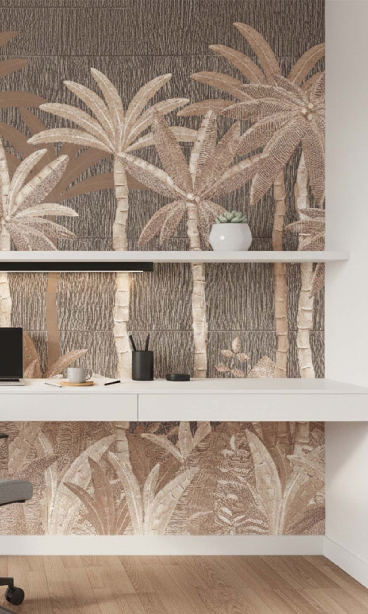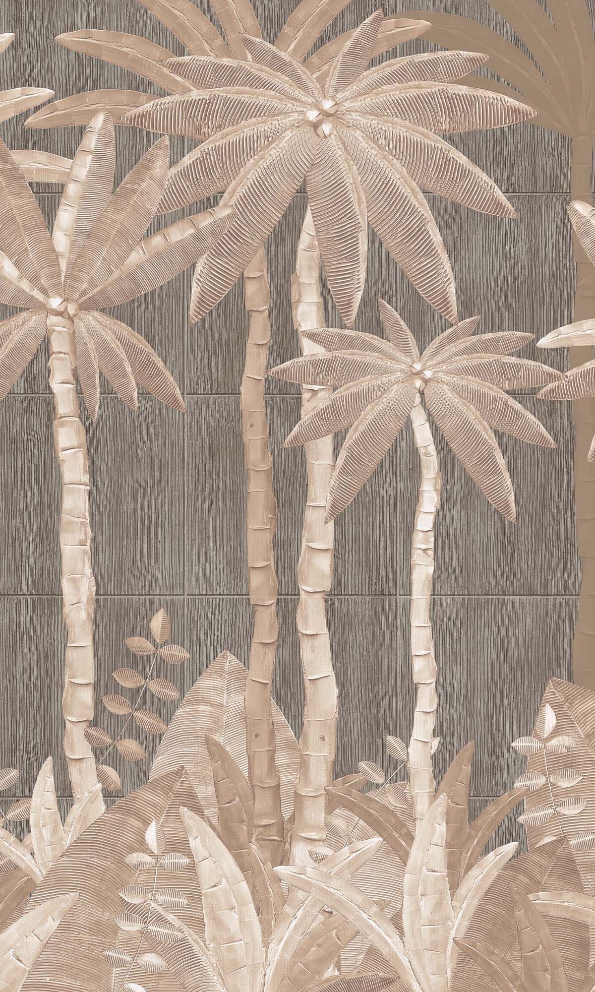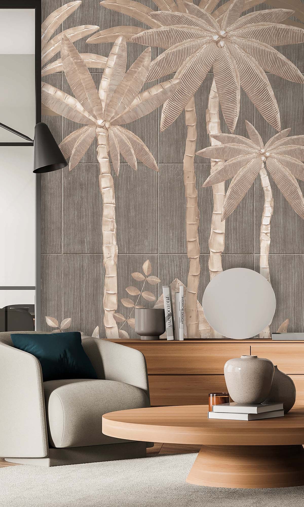 Wanna make a statement? This Tropical Palm Leaf mural doesn’t just sit quietly on your wall—it practically leaps out at you. We're talking big, bold jungle vibes—towering palm trees, thick layers of green, all that good stuff. The dark background really cranks up the drama, while those lighter palms pop like they’re catching a spotlight. It’s got that luxe, moody thing going on, like you just stepped into a boutique hotel in Bali.