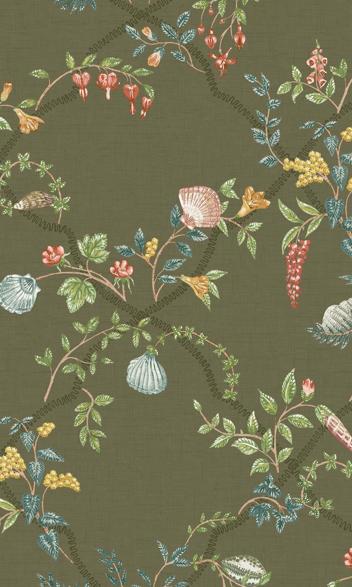 Green Floral Ocean Trellis Wallpaper R10266