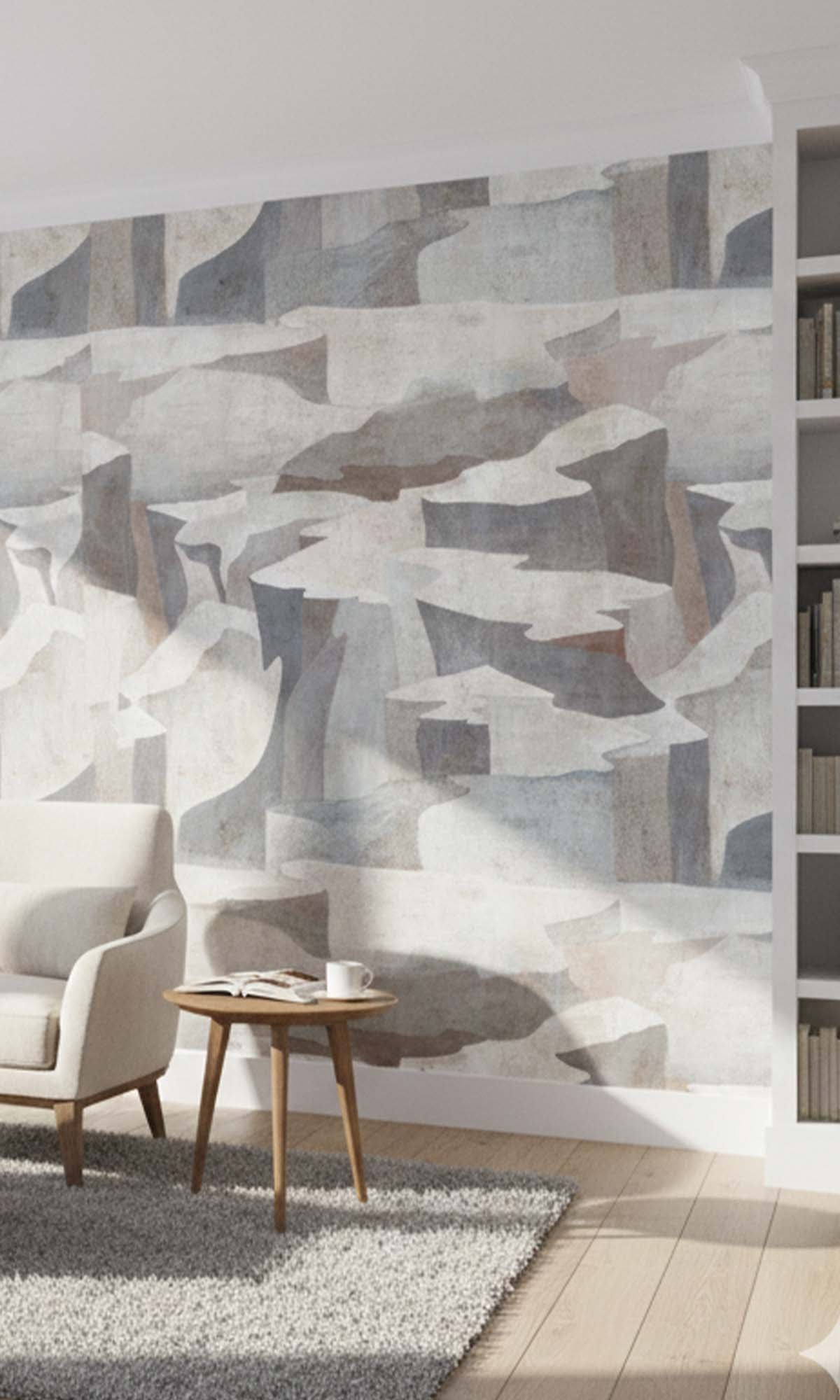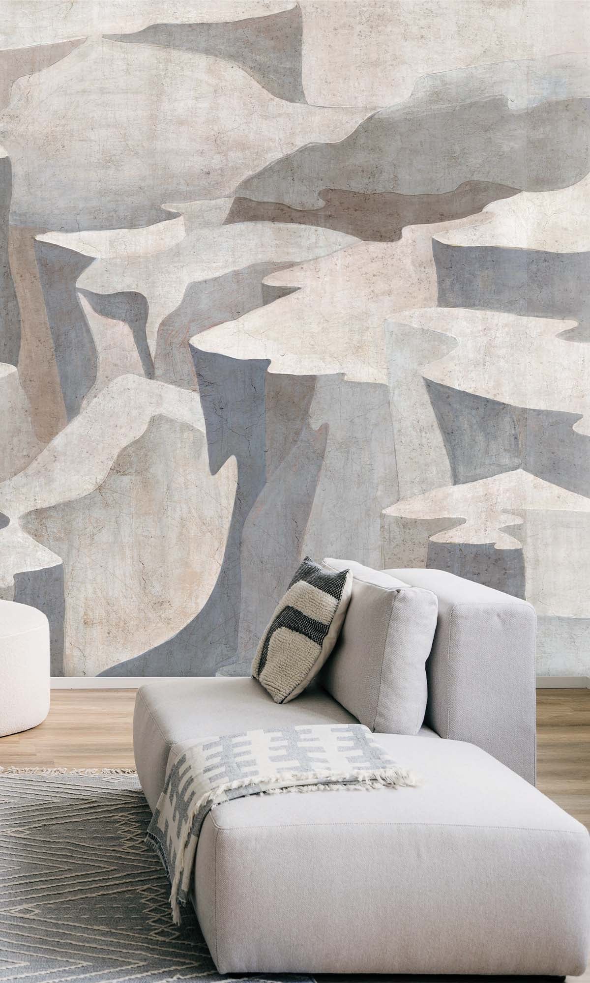 Ice Grey Abstract Coastlines Residential Mural RM9104